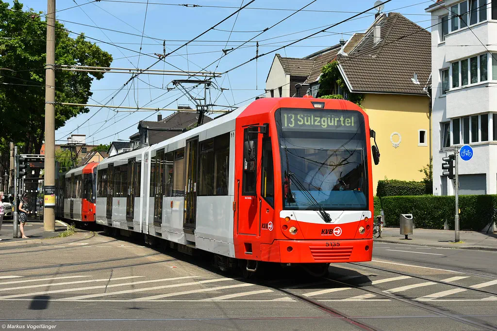 5210 wurde in die aktuellen KVB-Farben lackiert. Hier am Kiebitzweg am 19.12.2025.