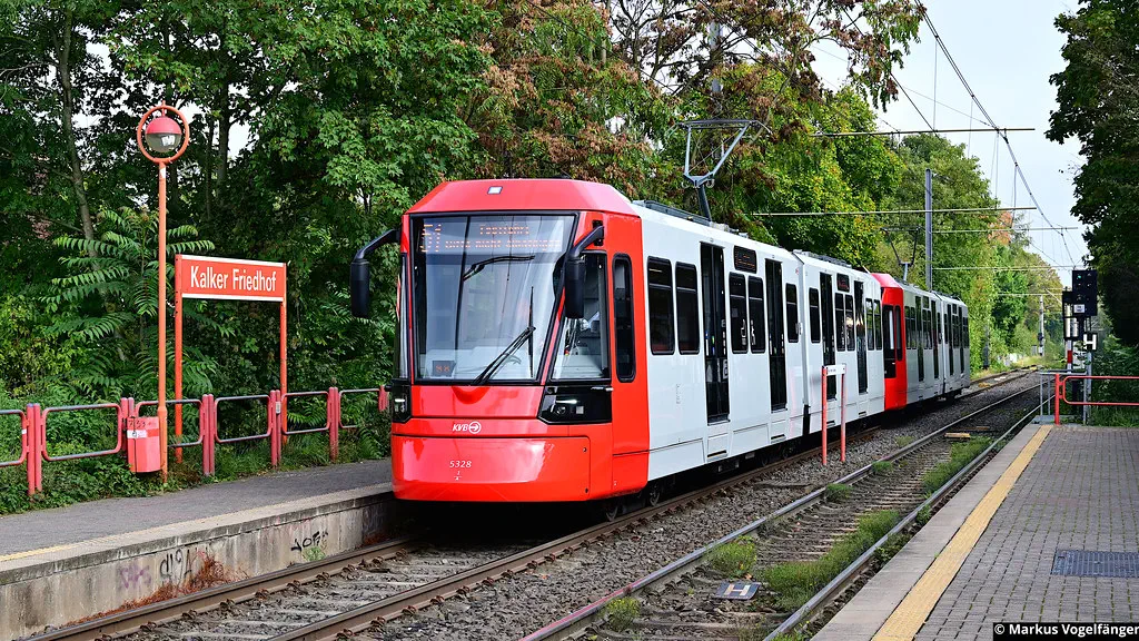 HF6 5328 während des 2000-km-Tests an der Haltestelle Kalker Friedhof am 16.10.2023.