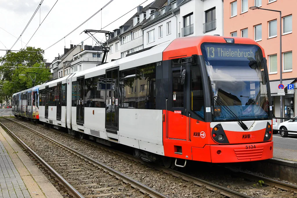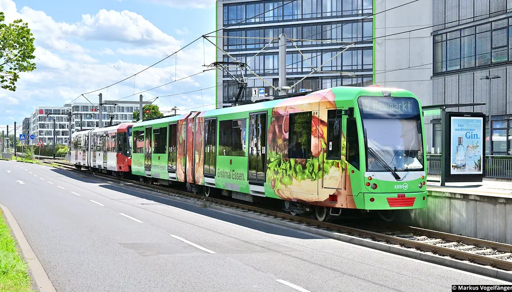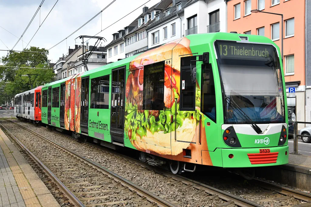 5133 wurde wie auch schon 5111 eine neue Ganz-Reklame "Uber Eats" angebracht. Hier zu sehen auf der Kreuzung Zülpicher Str./Gürtel und an der Haltestelle Gleueler Str./Gürtel am 29.08.2023.