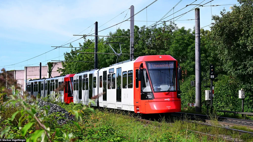 HF6 5324 befindet sich im Liniendienst. Hier als Linie 3 zusammen mit 5304 an der Haltestelle Rochusplatz am 30.08.2023.