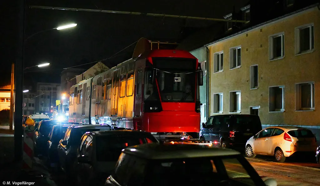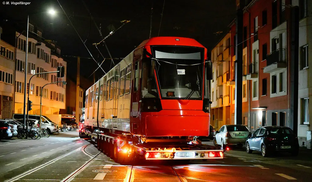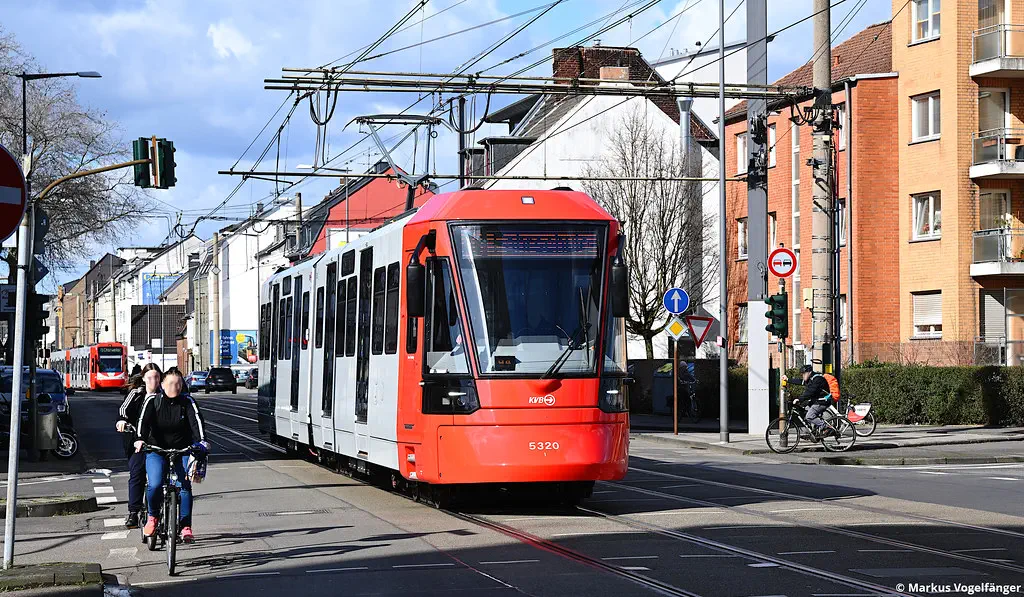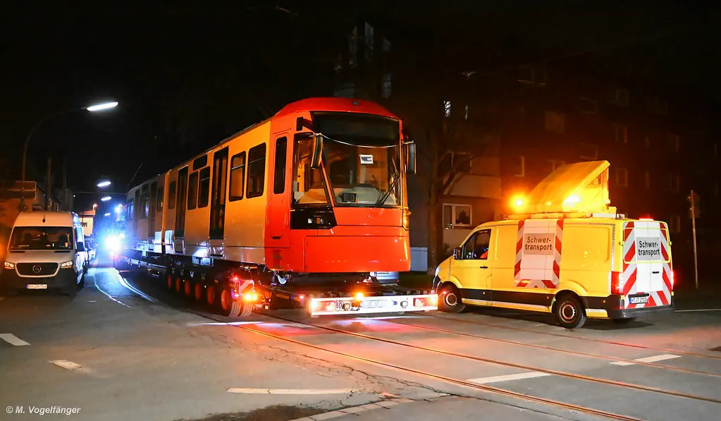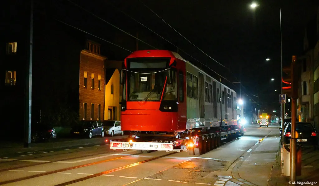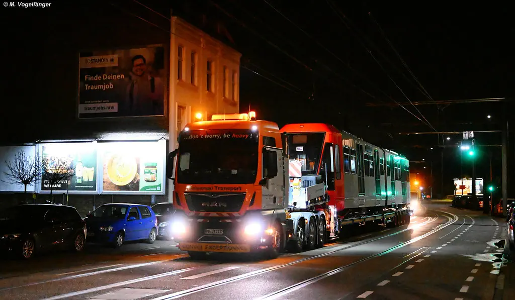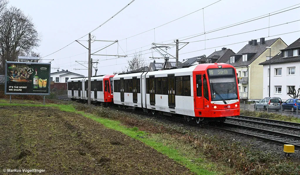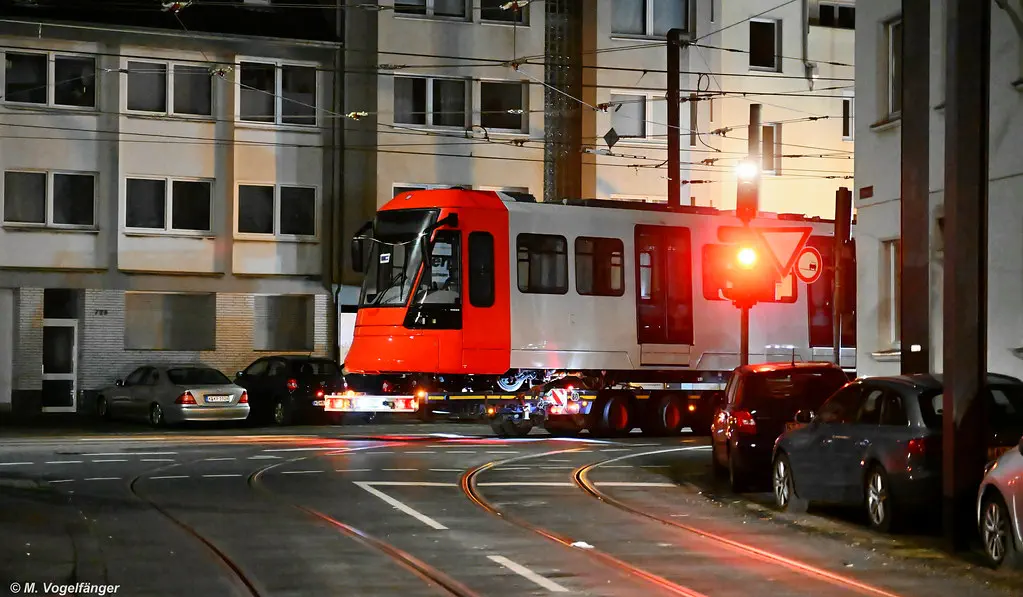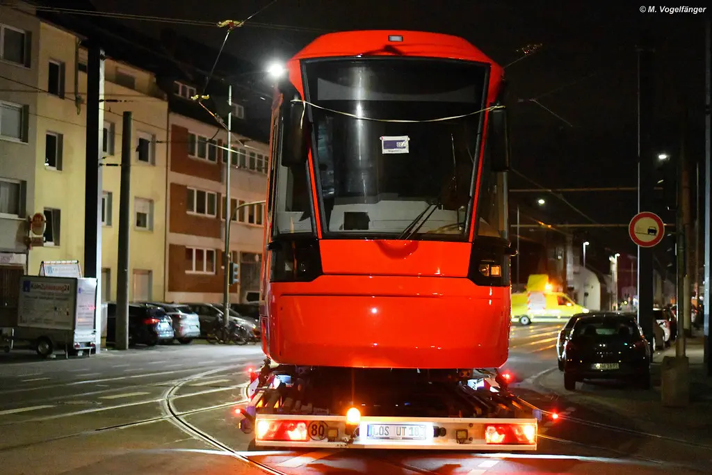 Neufahrzeug HF6 5320 während der ersten Fahrt auf öffentlichen Kölner Gleisen auf der Neusser Straße am 15.03.2023.