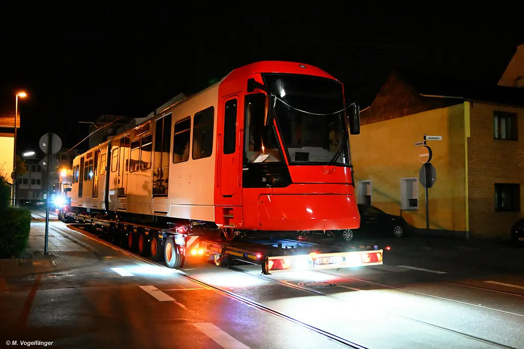 HF6 5311 absolvierte seine erste Fahrt auf öffentlichen Kölner Gleisen. Hier auf der Neusser Straße und an der Haltestelle Kalker Friedhof am 27.07.2022.