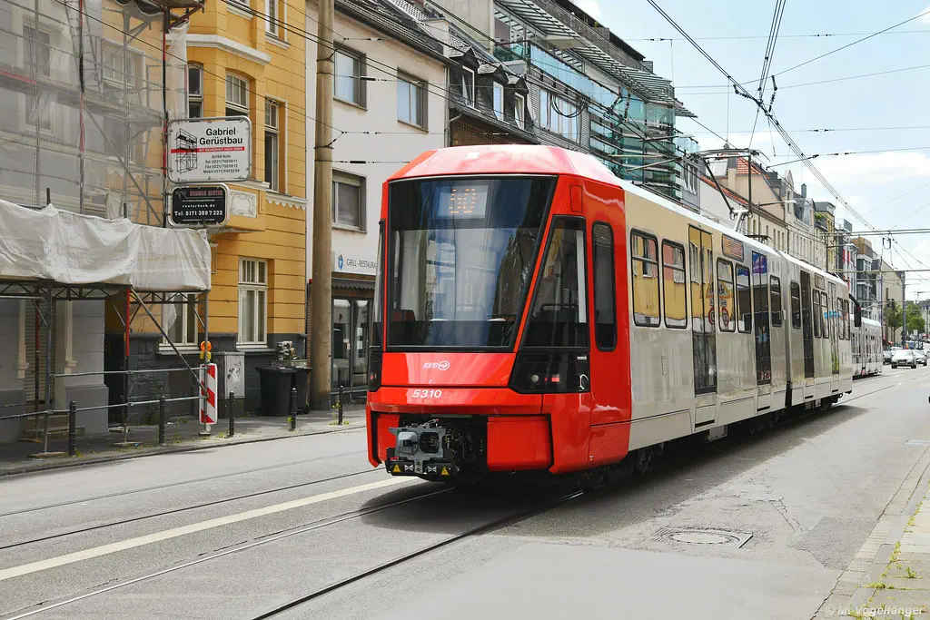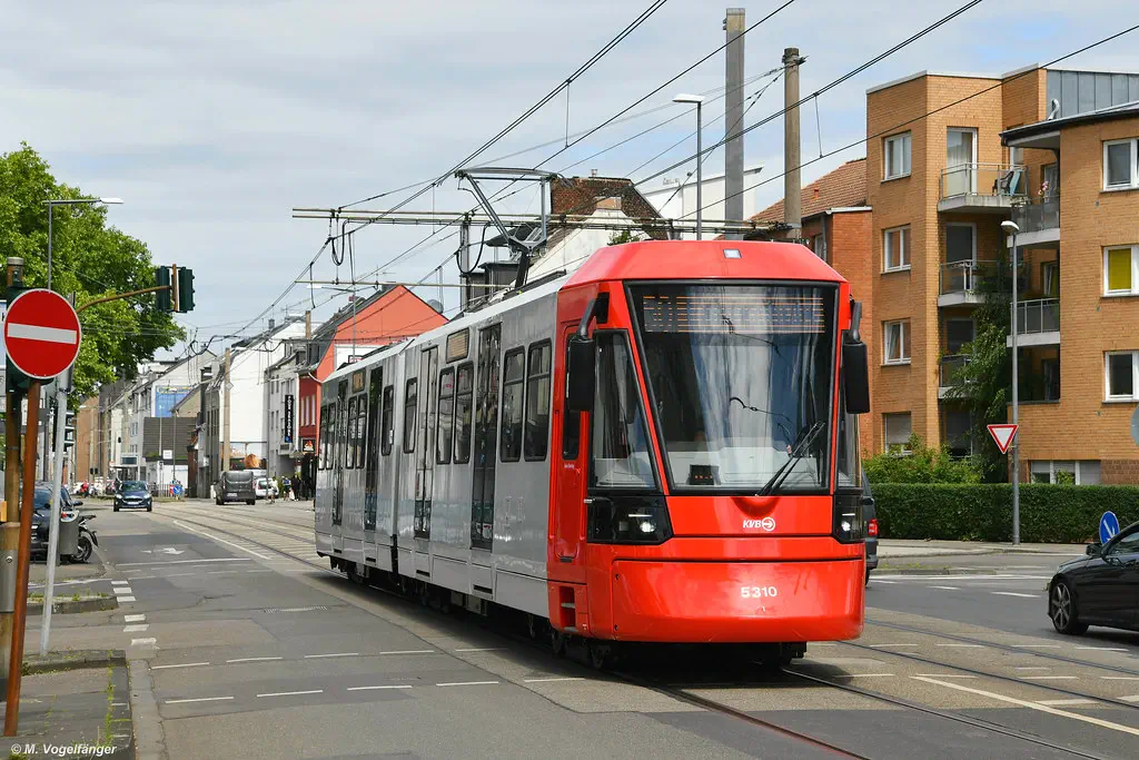 HF6 5310 absolvierte seine erste Fahrt auf öffentlichen Kölner Gleisen. Hier auf der Neusser Straße und an der Haltestelle Kalker Friedhof am 08.07.2022.