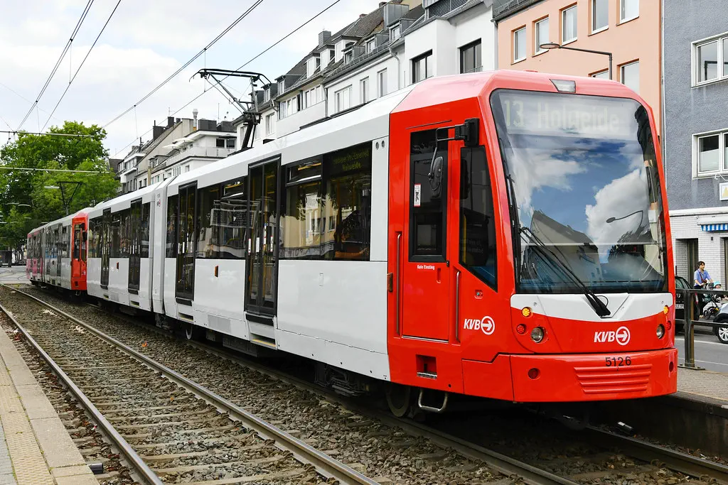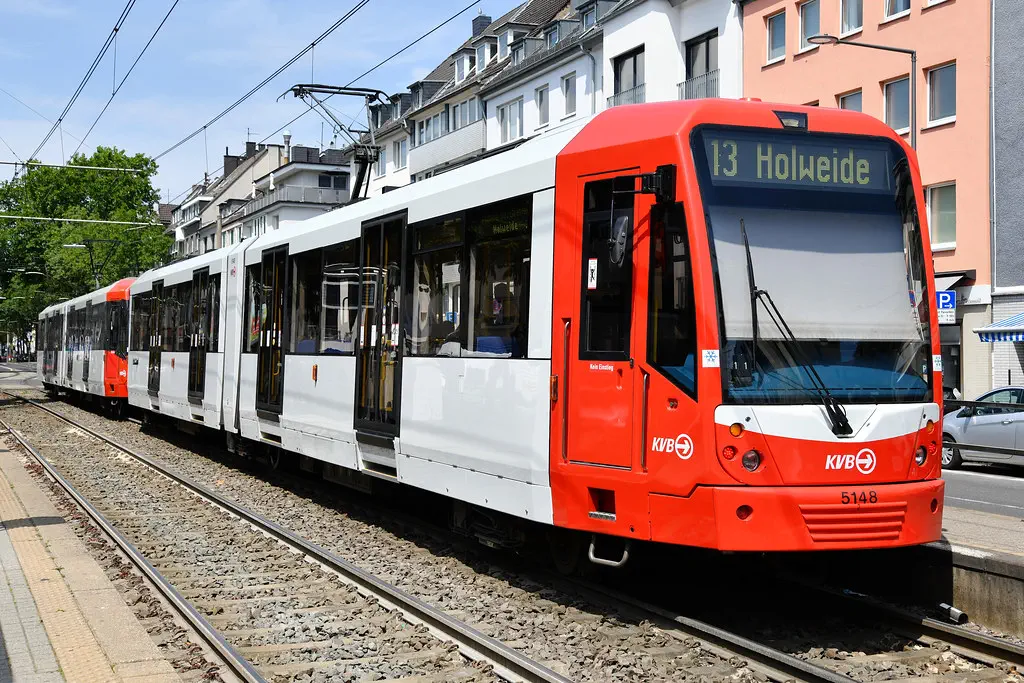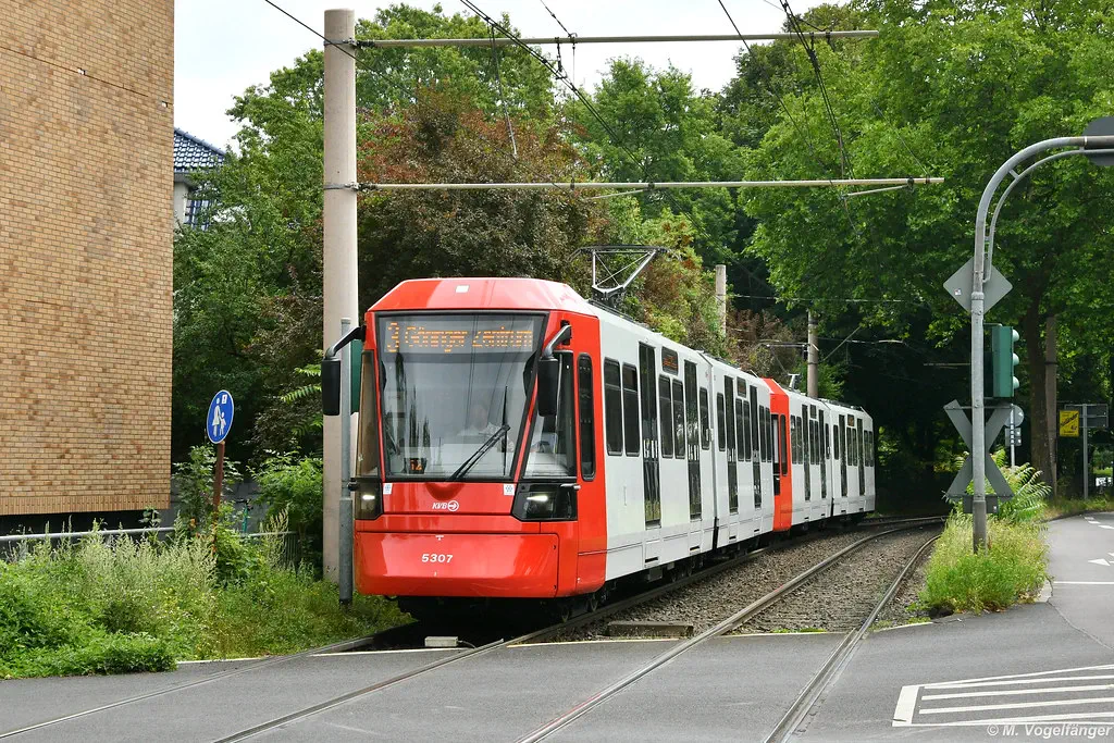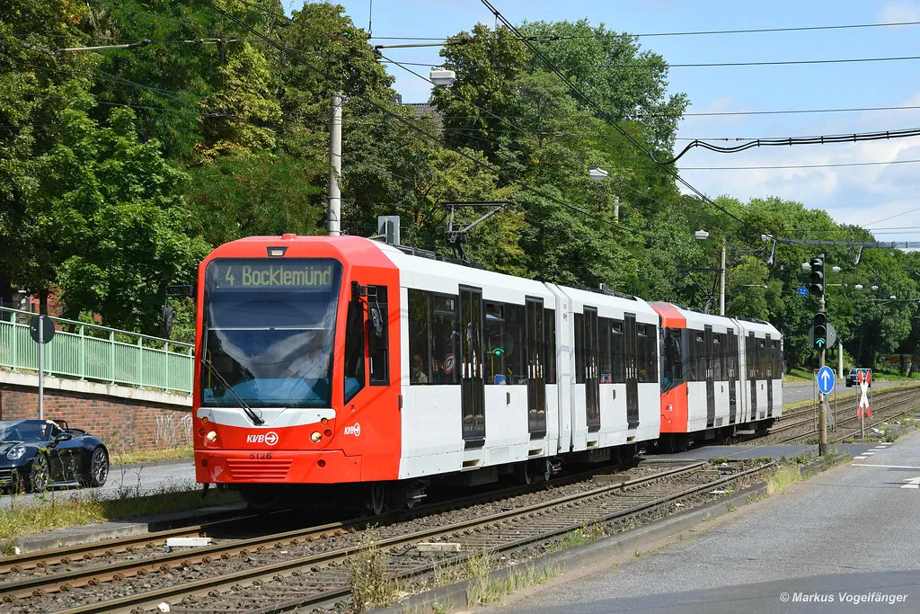 5126 wurde in die aktuellen KVB-Farben lackiert. Hier zu sehen auf dem Pfälzischen Ring am 16.07.2022.