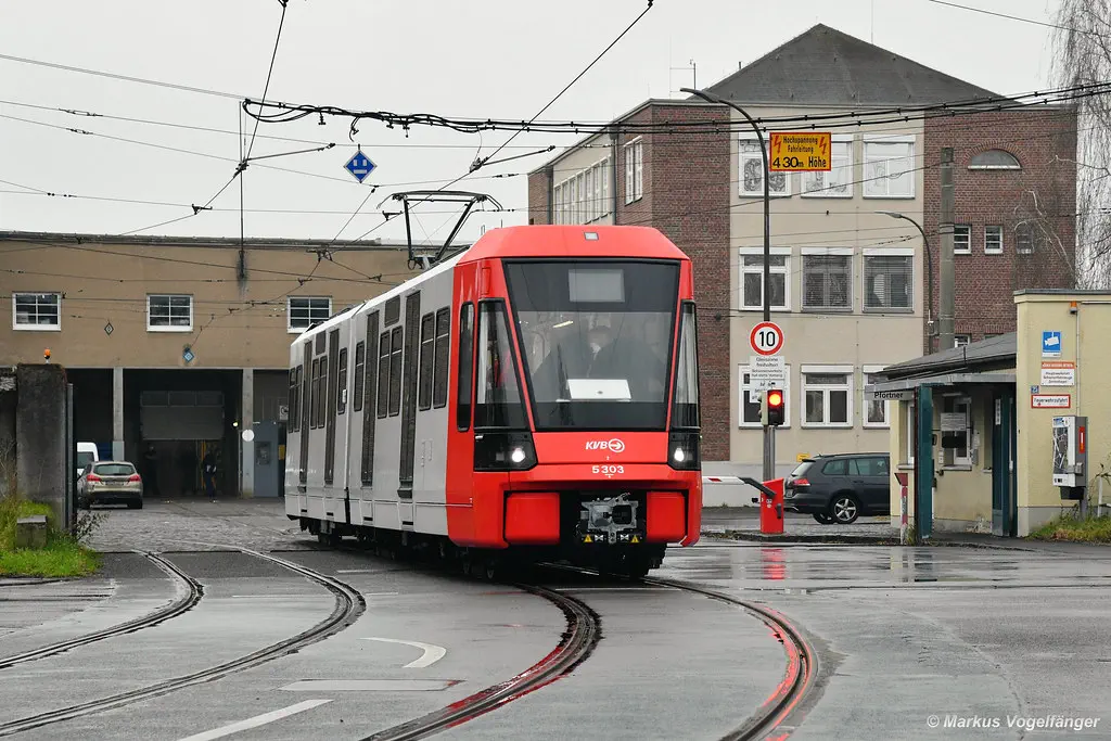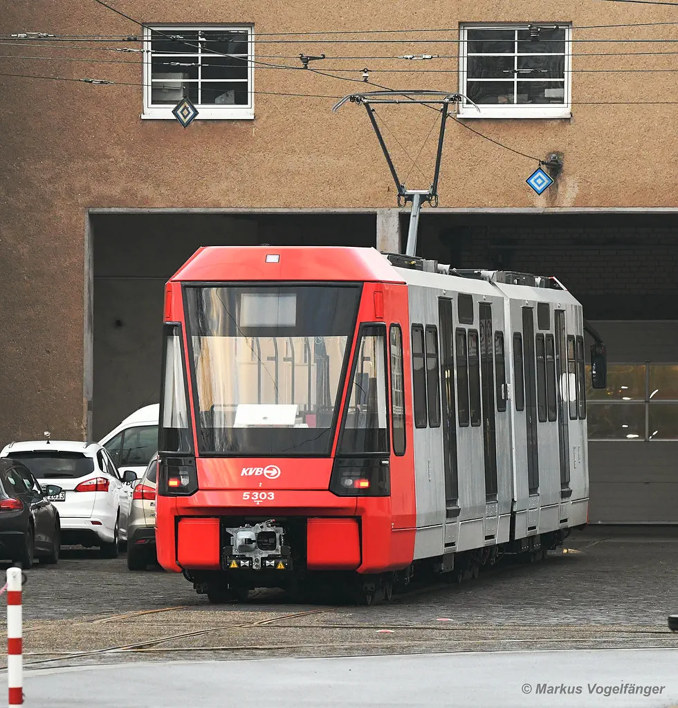 5303 auf Rangierfahrt (vom Heckfahrschalter aus) vor der KVB-Hauptwerkstatt am 17.01.2022
