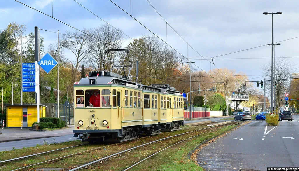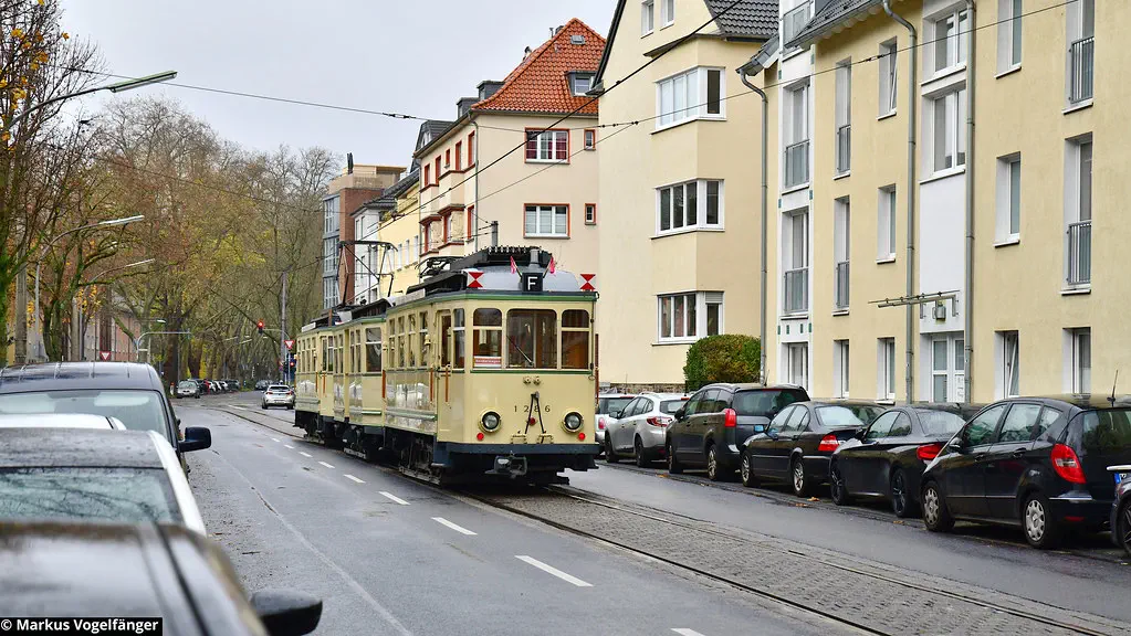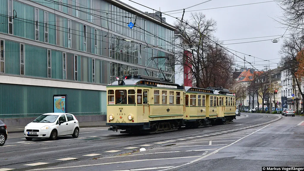 Finchen (1285/1257/1286) auf dem Weg zur heutigen Nikolausfahrt auf der Karlsruher Straße am 03.12.2023.