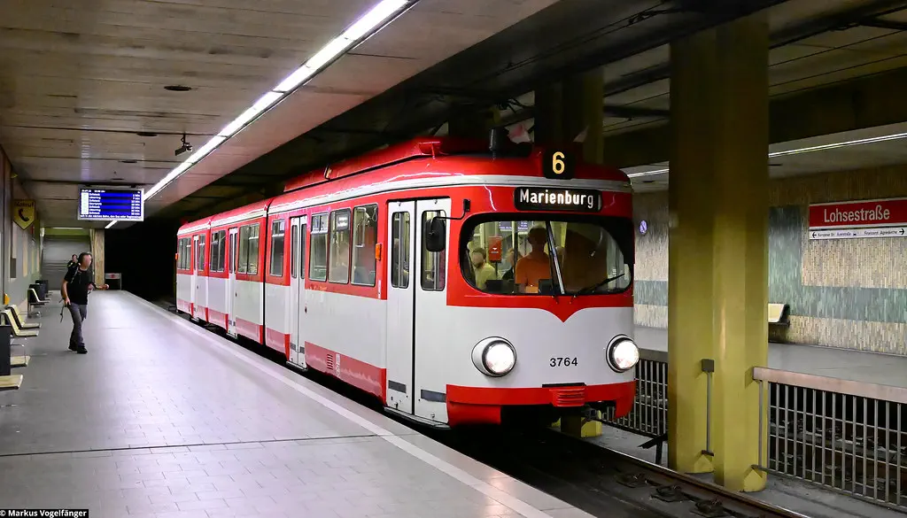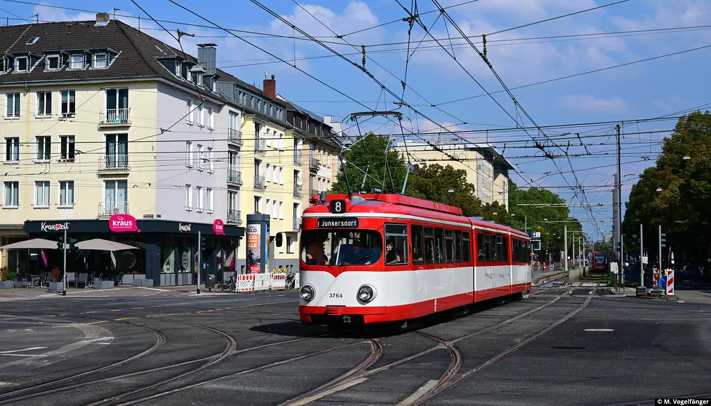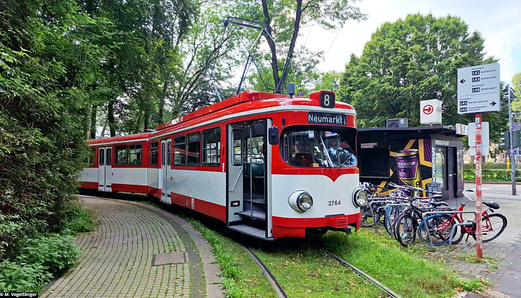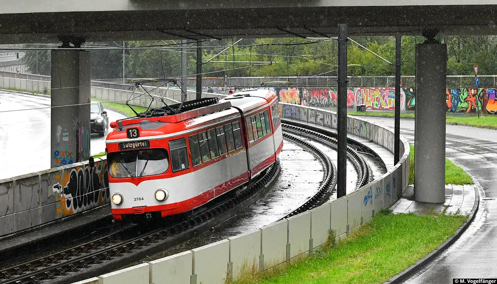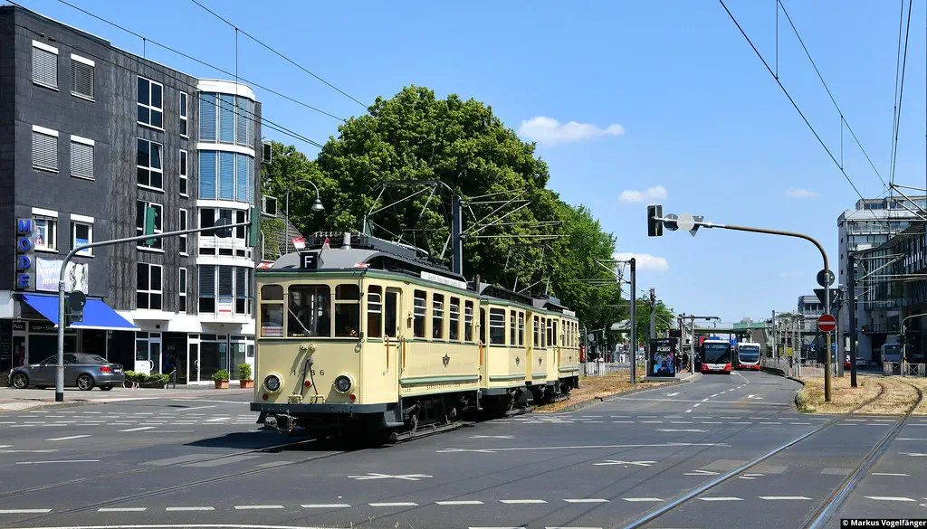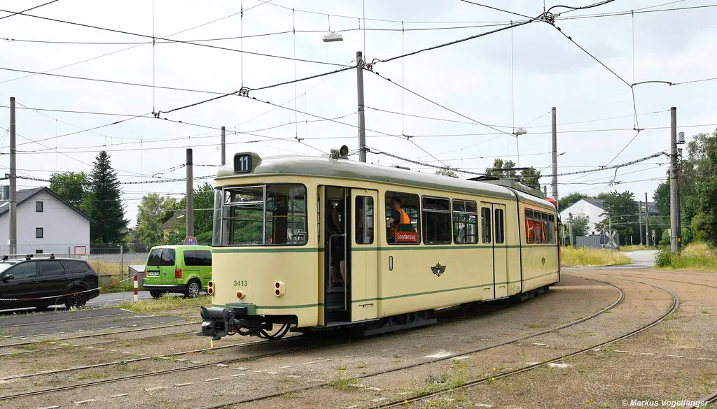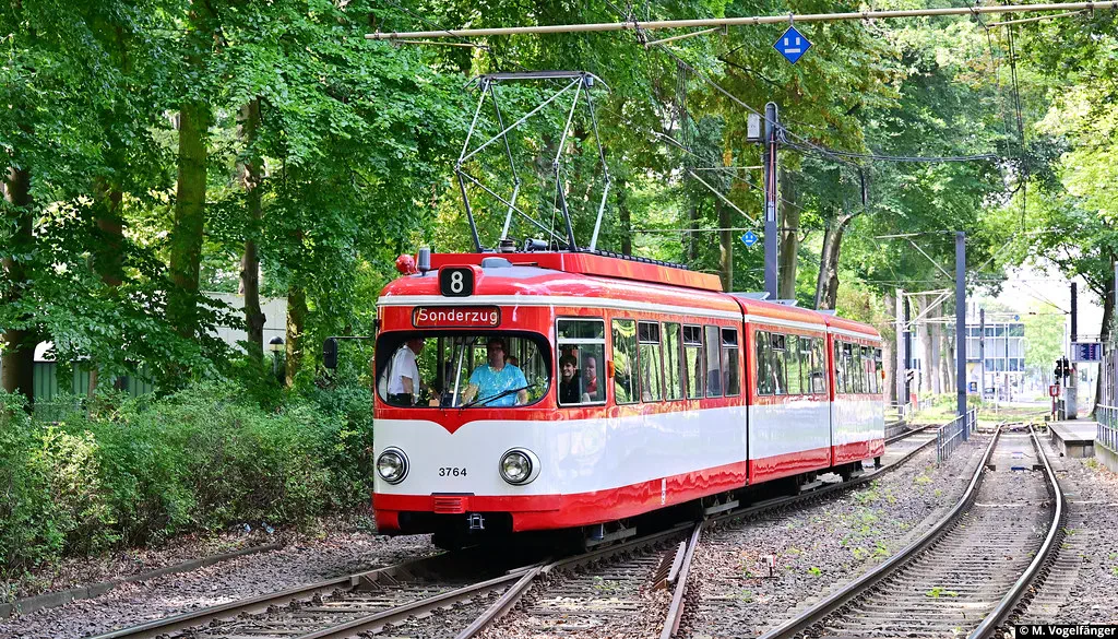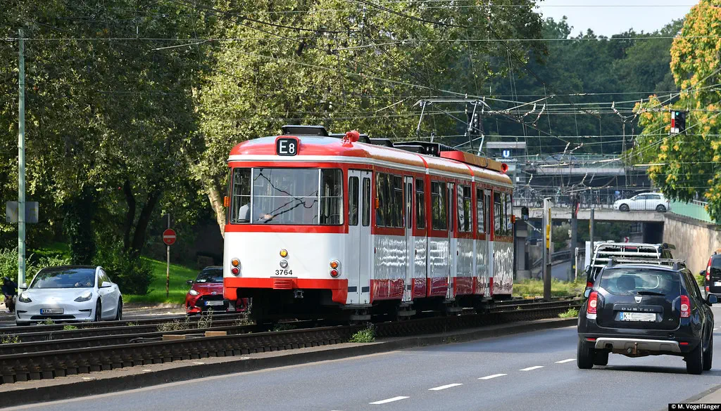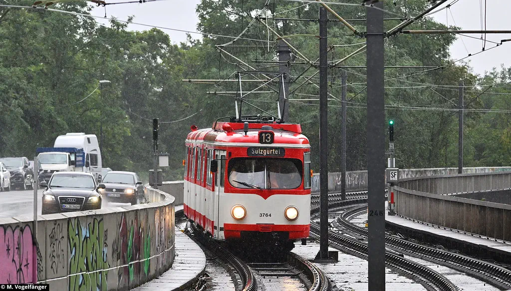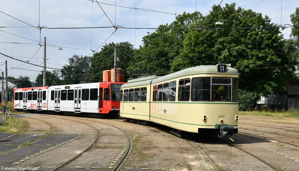 Am 20.08.2023 fanden Schulungs-Fahrten mit dem Museumswagen 3764 statt. Dafür wurde einige Male zwischen Junkersdorf und dem Neumarkt gefahren.