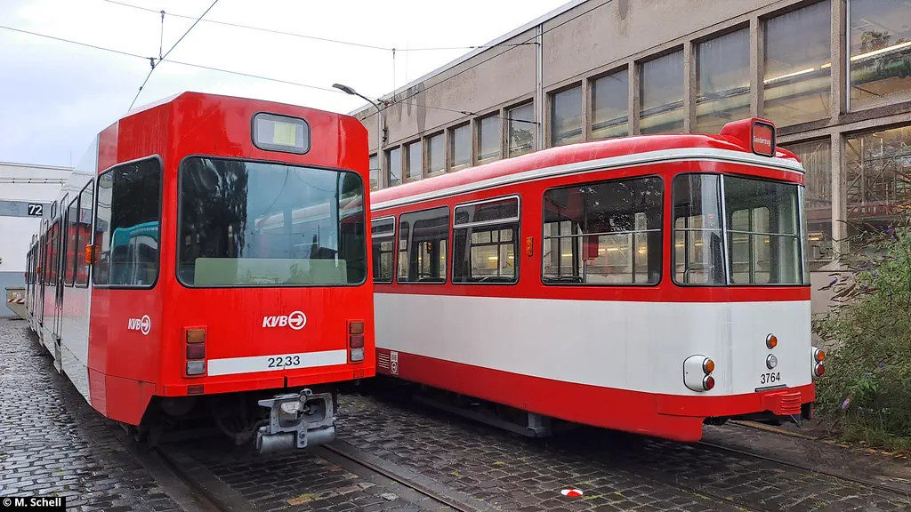 Am 29.07.2023 wurde 3764 nach erfolgter Reparatur von der KVB-Hauptwerkstatt zurück ins Straßenbahn-Museum Thielenbruch überführt. Anbei Bilder während der Überführung auf der Zulaufstrecke der Abstellanlage Weidenpesch, an der Haltestelle Lohsestraße und in Holweide.