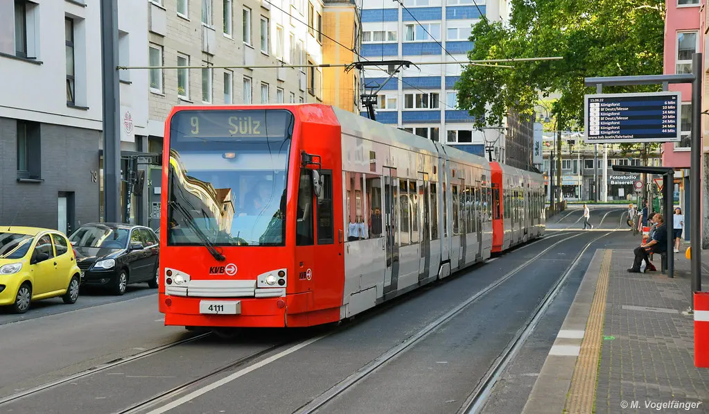 4111 wurde die Ganzgestaltung "100 Jahre Uni-Köln" entfernt. Hier zu sehen wieder in den aktuellen KVB-Farben auf dem Mauritiussteinweg am 15.06.2022.