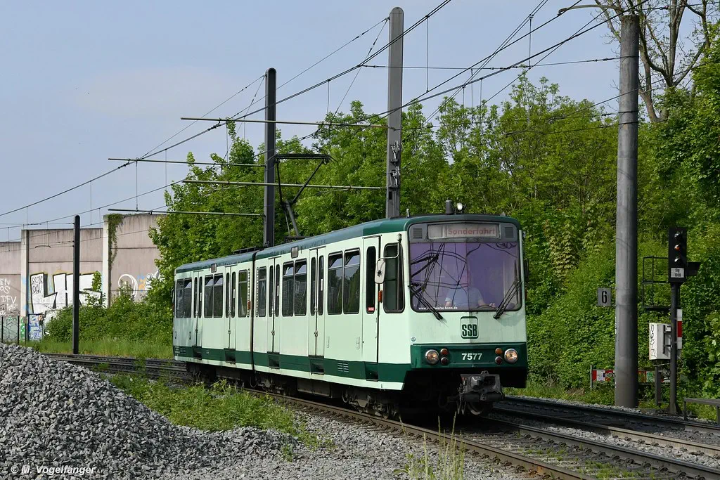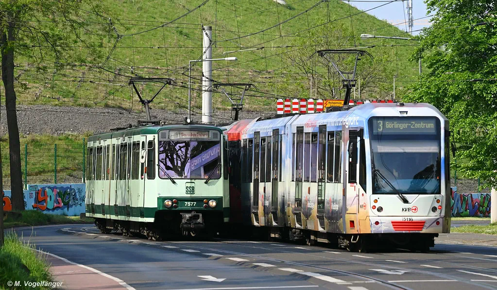 Der Bonner B-Wagen 7577 auf der Karlsruher Straße und in Holweide am 08.05.2022.