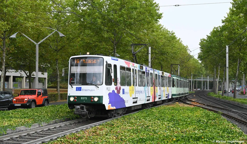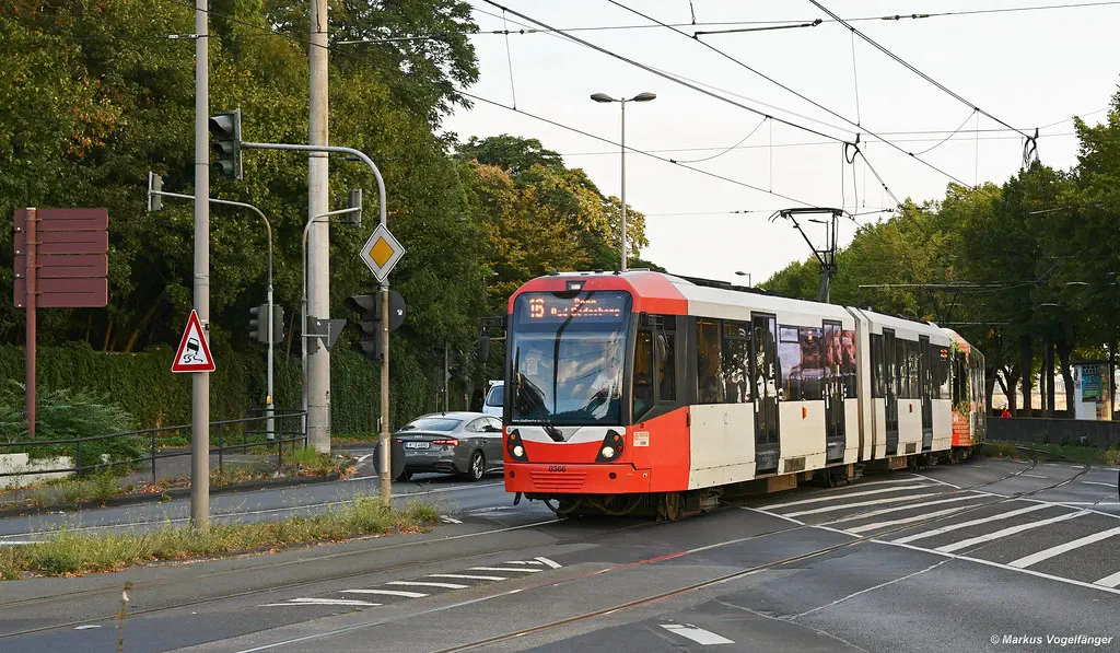 Dem Bonner 0366 wurde die Ganzreklame "Bauhaus" entfernt. Hier zu sehen wieder in der Werks-Lackierung auf der Kreuzung Militärringstraße/Oberländer Ufer/Heinrich-Lübke-Ufer am 30.08.2022.