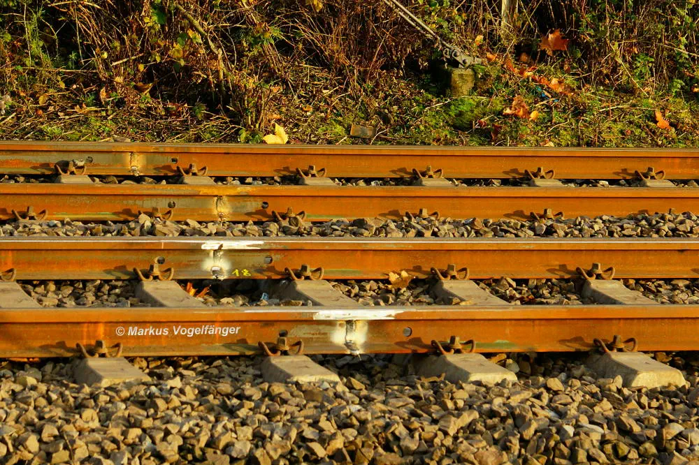 Frische Schweißverbindungen der neuen Gleise zwischen den Haltestellen Geestemünder Straße und Fordwerke Süd.