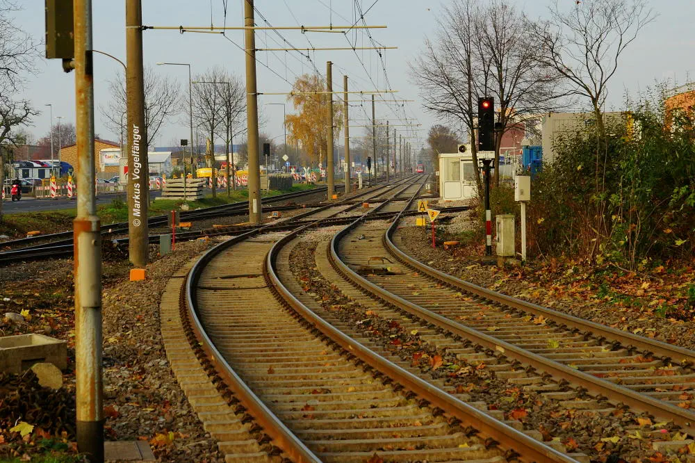Die Gleisanlage auf der Emdener Straße von der Bremerhavener straße aus gesehen am 18.10.2013.