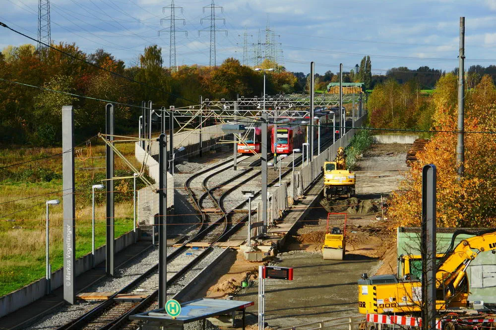 Die neuen Schwellen zwischen den Haltestellen Fordwerke Mitte und Fordwerke Nord.
