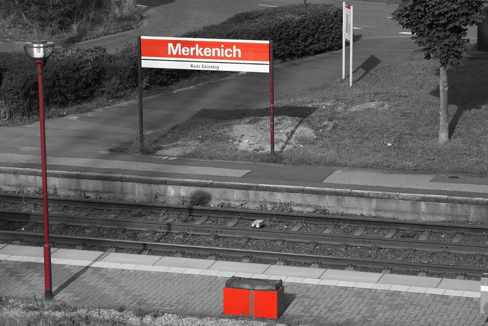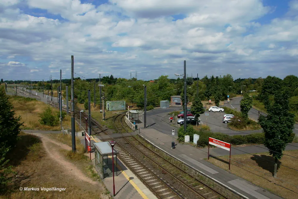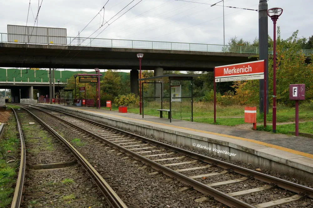 Die Ankunftshaltestelle Merkenich am 20.10.2013.