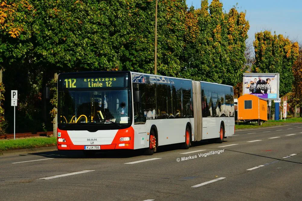 BM-KK 1798 als Schienenersatzbus der Linie 112 kurz vor der Ersatzhaltestelle Fordwerke Mitte am 19.10.2013.