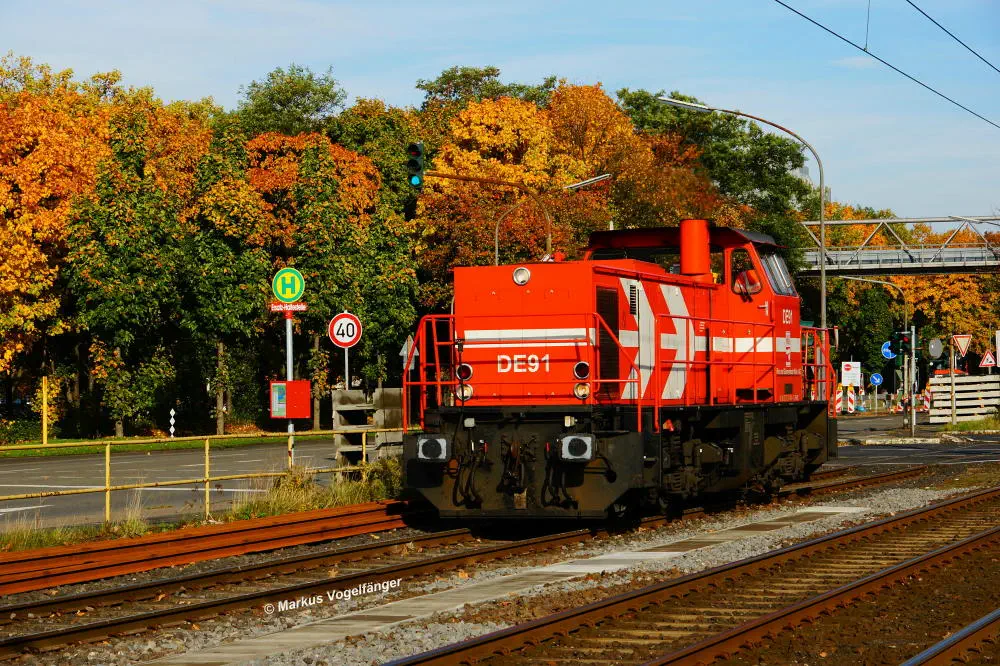 DE91 beim überqueren der Stadtbahngleise an der Haltestelle Fordwerke Nord am 19.10.2013.