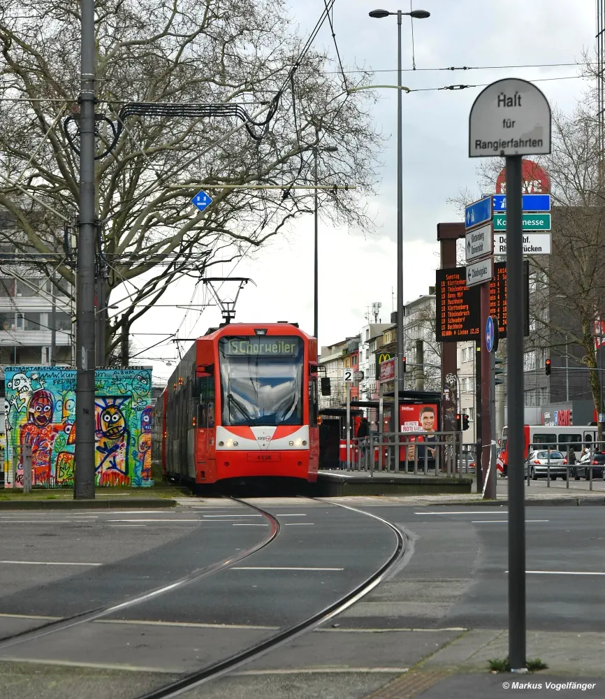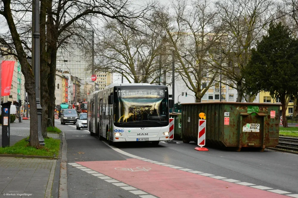 Aufgrund von Baumaßnahmen auf dem Salierring vom 13.(9 Uhr) bis 16.03.2020 (3 Uhr) kommt es auf den Linien 12, 15, 16 und 17 zu Änderungen. Die Linie 12 fährt zwischen Merkenich und Barbarossaplatz. Zwischen Barbarossaplatz und Zollstock Südfriedhof fährt ein ErsatzBus 112. Die Linie 15 fährt zwischen Chorweiler und Barbarossaplatz. Zwischen Barbarossaplatz und Ubierring fahren ErsatzBusse 115. Die nördliche Linie 16 fährt von Niehl ab der Poststraße über die Severinstraße bis Koelnmesse und zurück. Von Bonn kommend fährt der südliche Teil der Linie 16 ab Schönhauser Str. über den Bonner Wall bis zur Severinstraße und zurück. Die Linie 17 entfällt, da sie durch die südlichen Fahrten der Linie 16 ersetzt wird