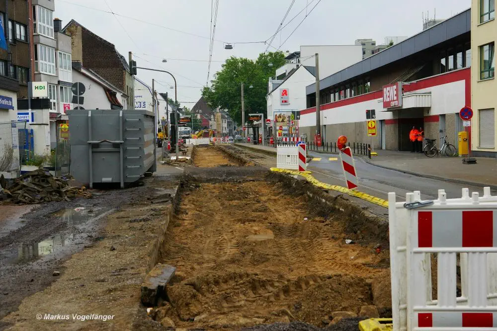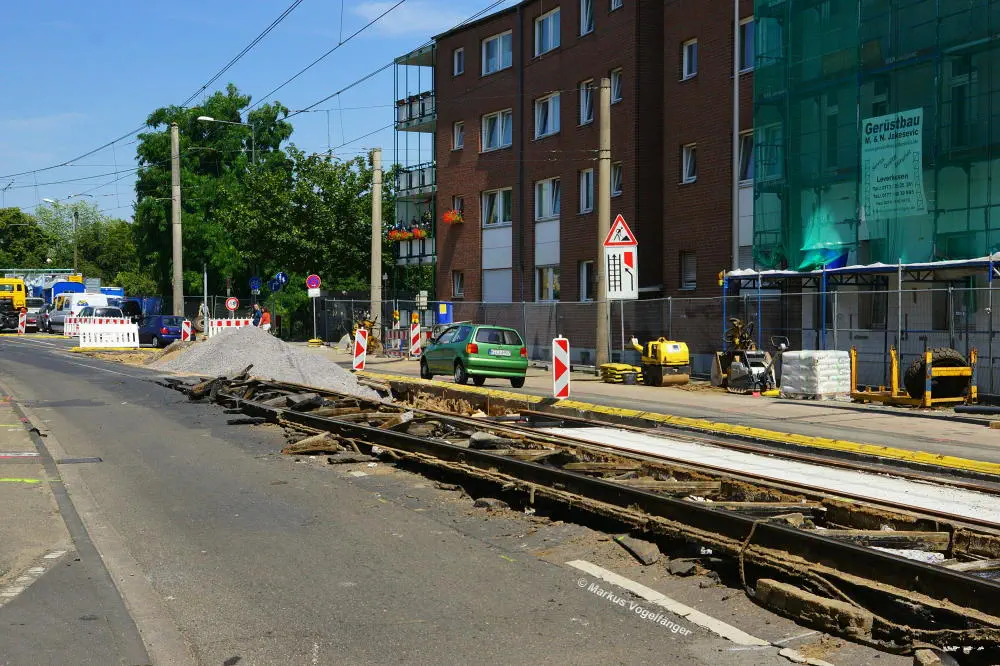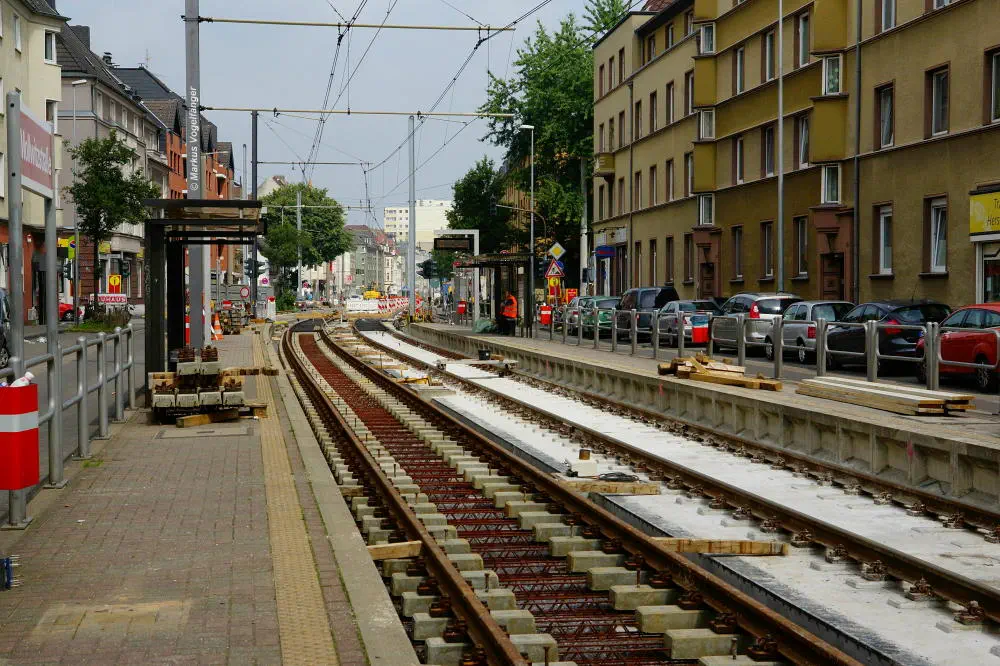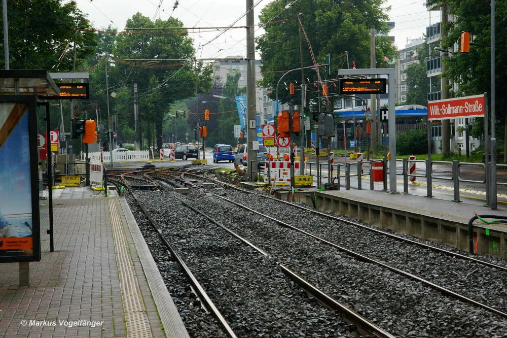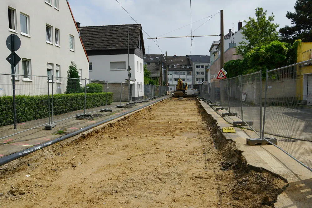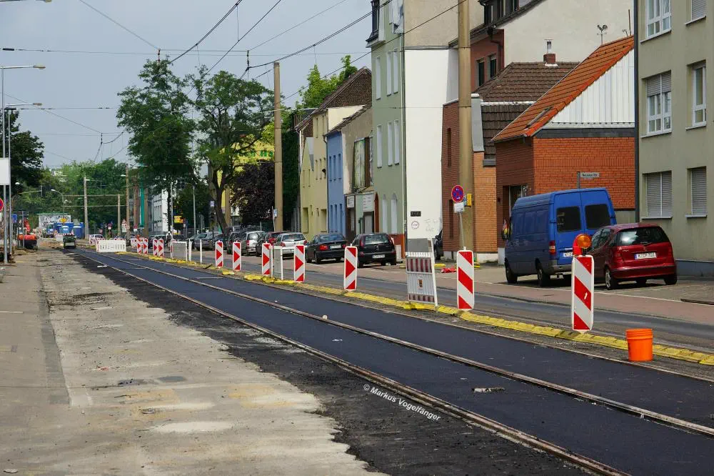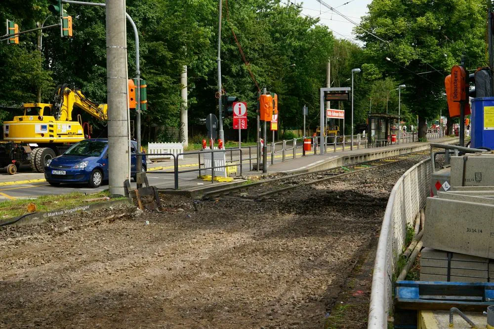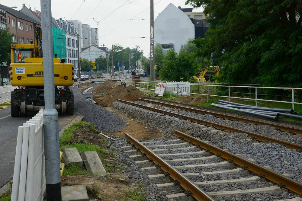 An der Haltestelle Wilhelm-Sollmann-Straße wurden die Gleise Richtung Innenstadt bereits entfernt. (07.07.2014)