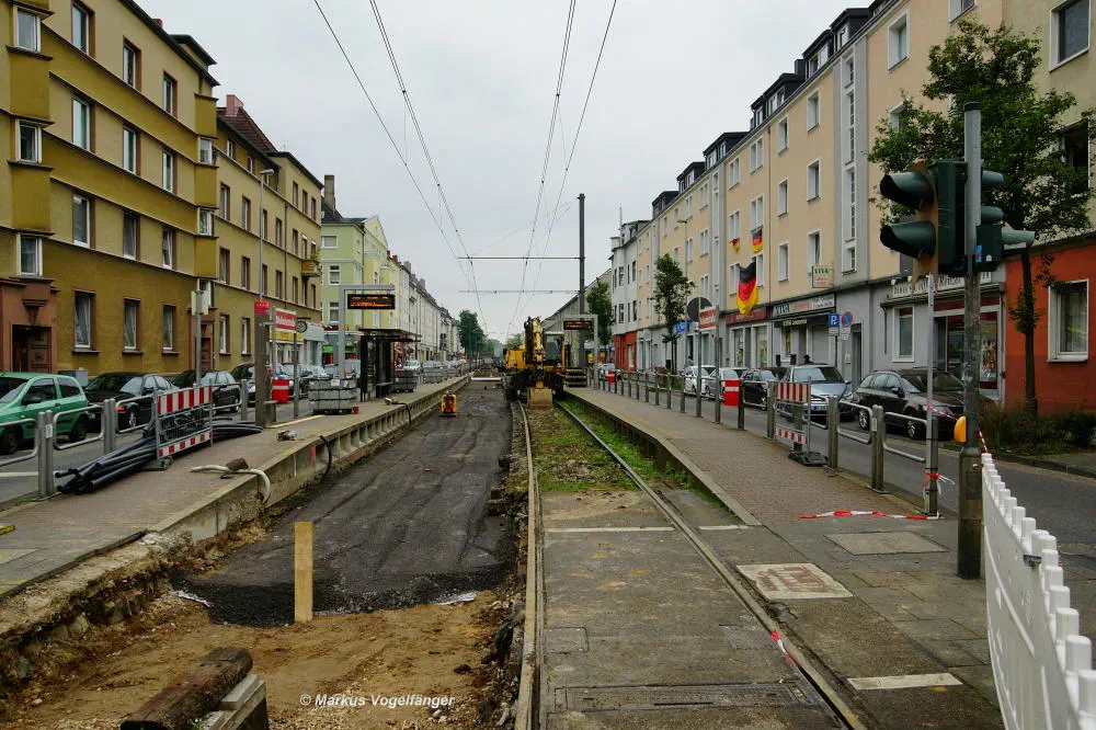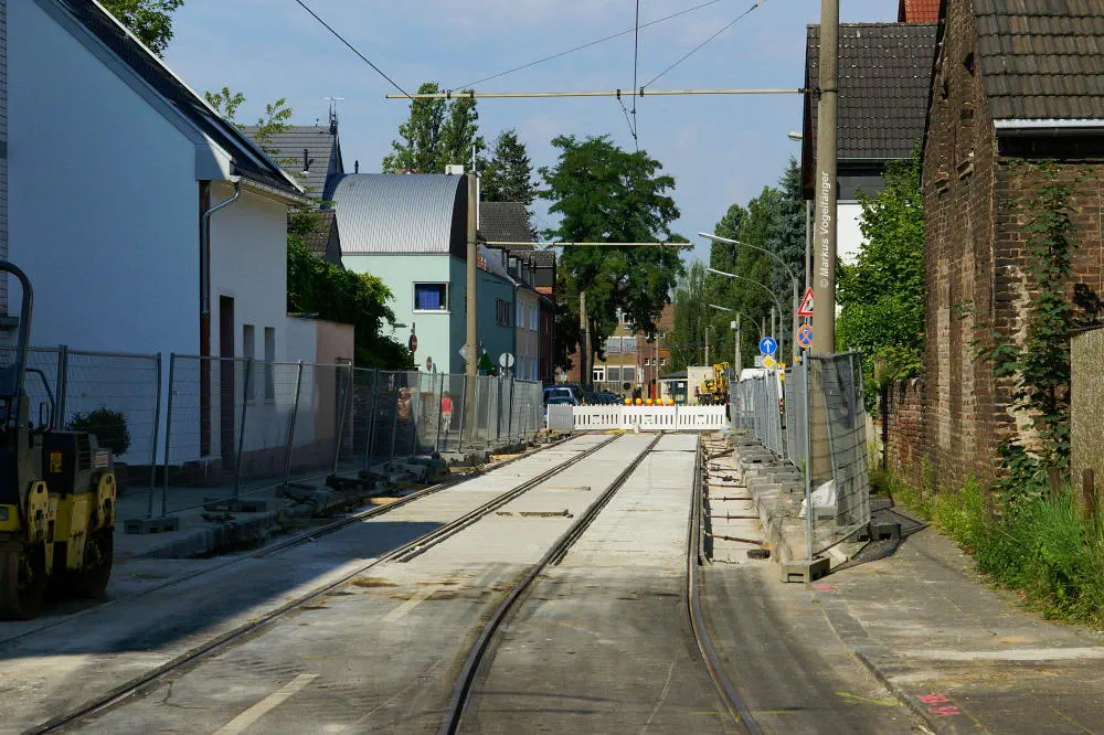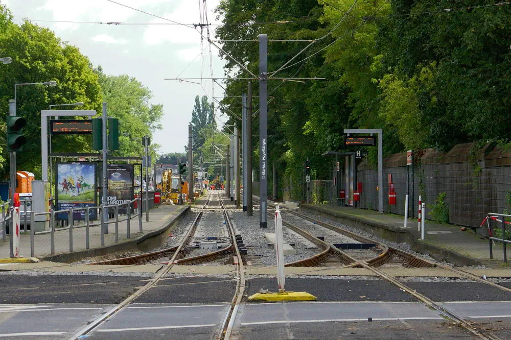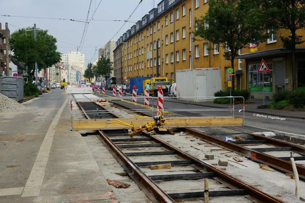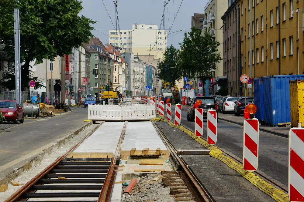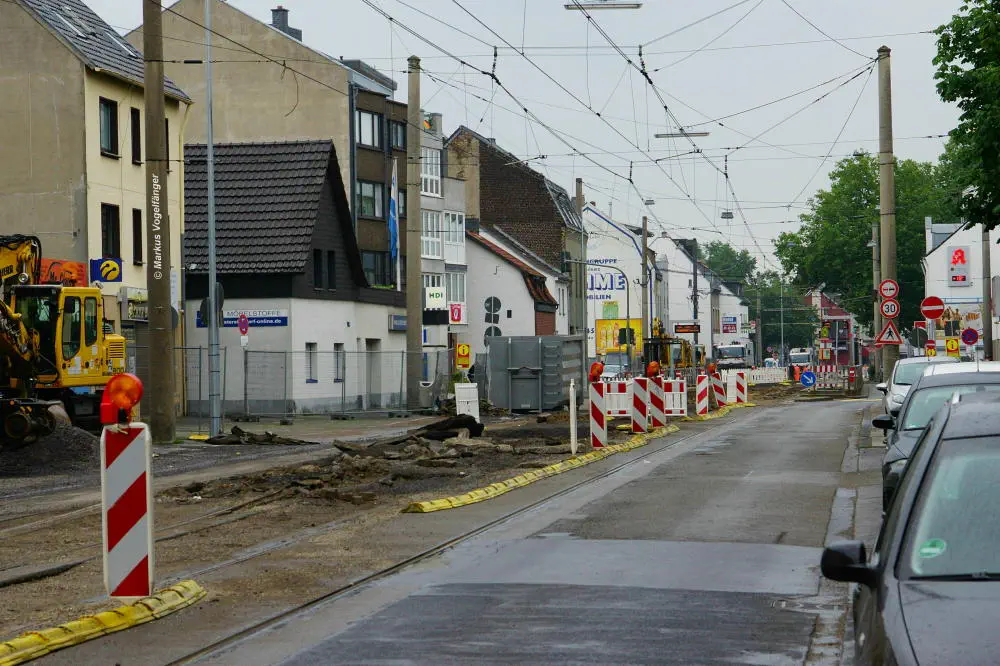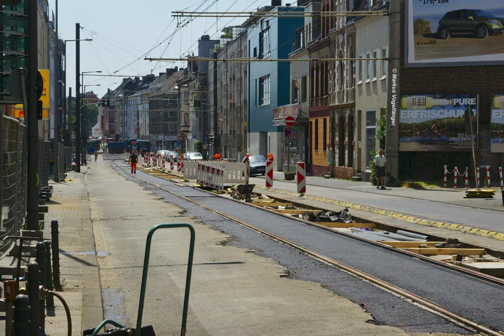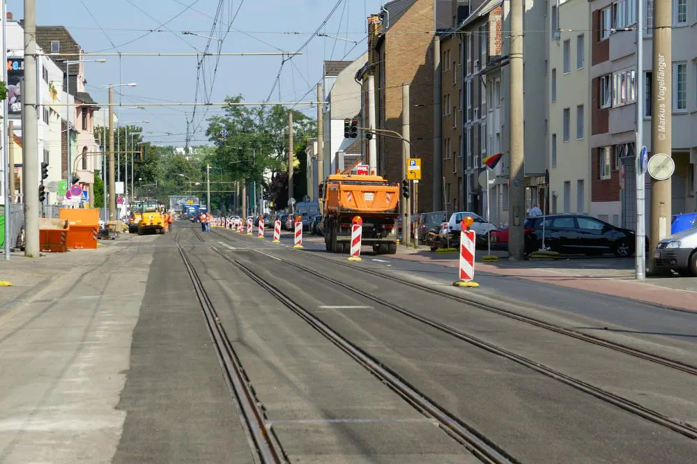 An der Haltestelle Wilhelm-Sollmann-Straße wurden die Gleise Richtung Innenstadt bereits entfernt. (07.07.2014)