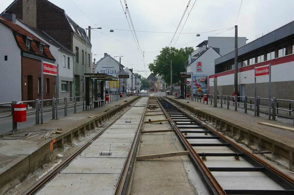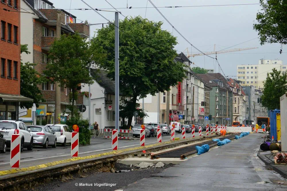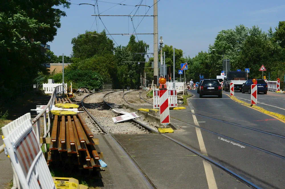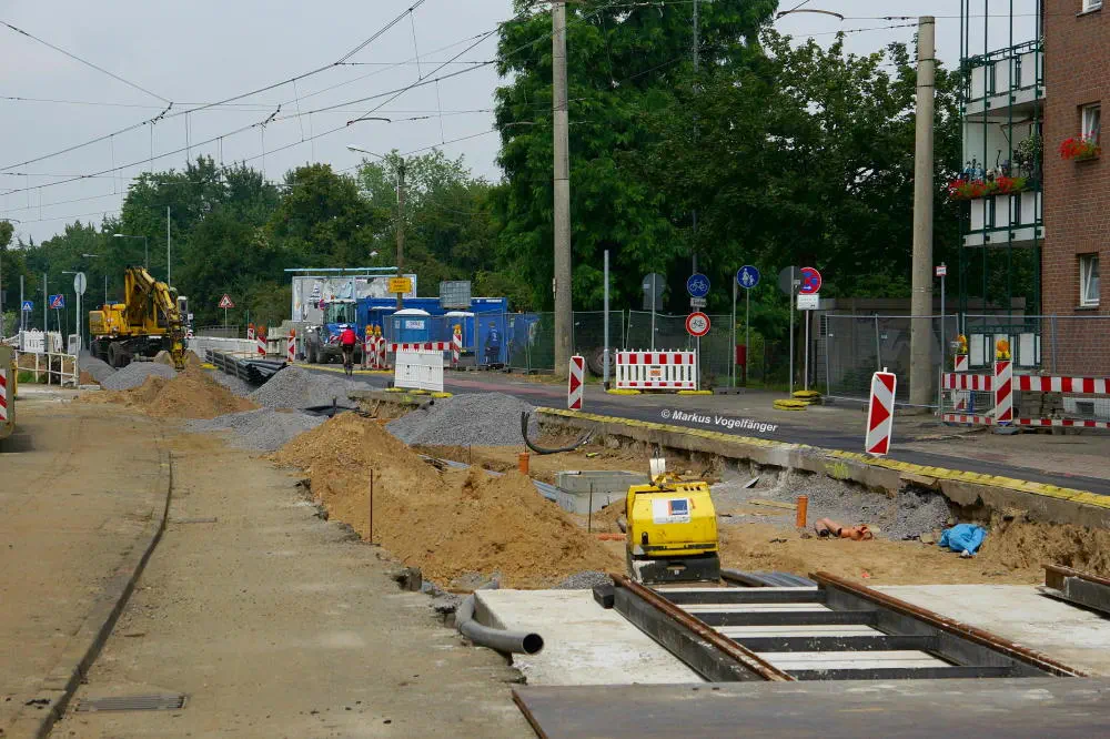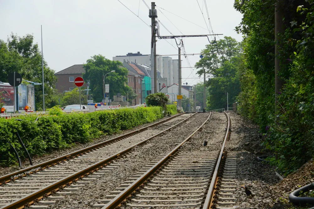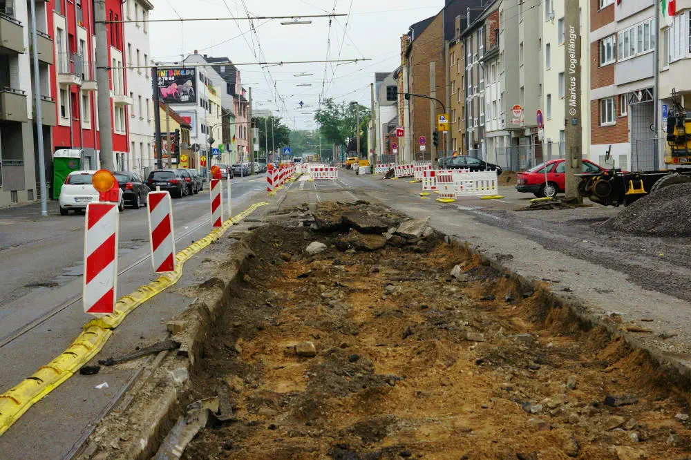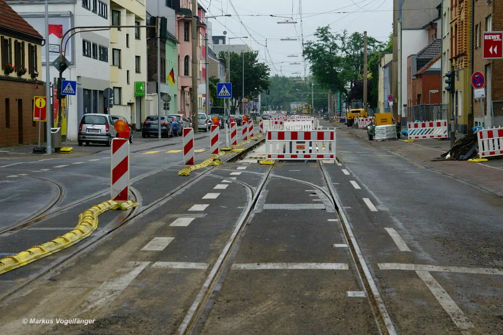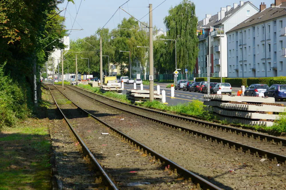 An der Haltestelle Wilhelm-Sollmann-Straße wurden die Gleise Richtung Innenstadt bereits entfernt. (07.07.2014)