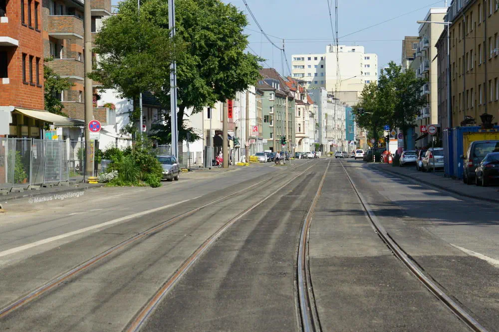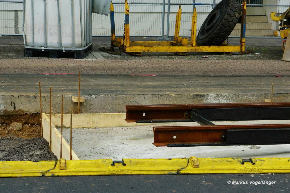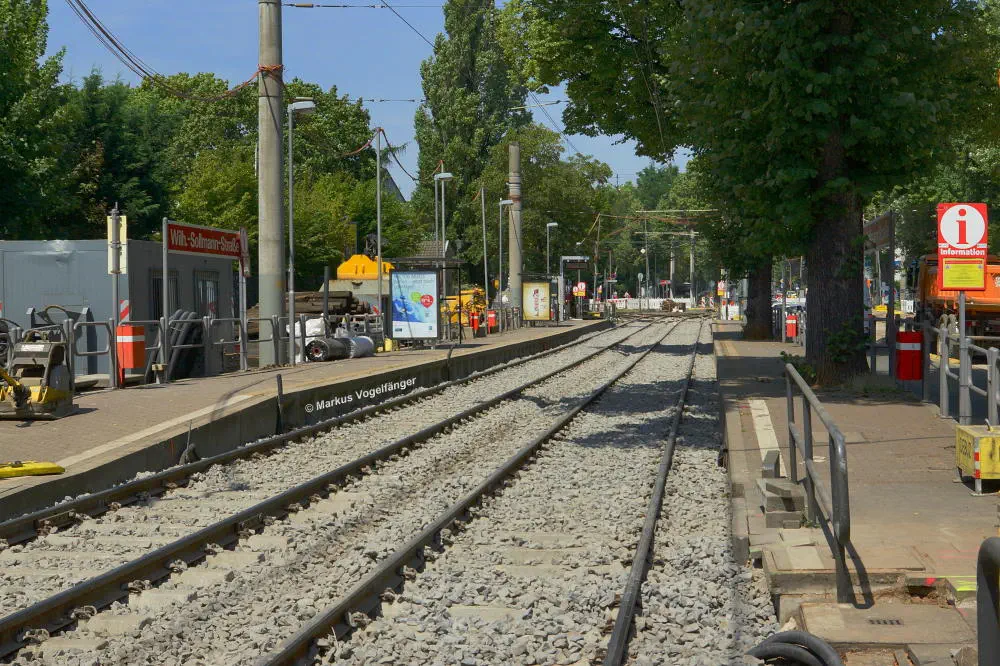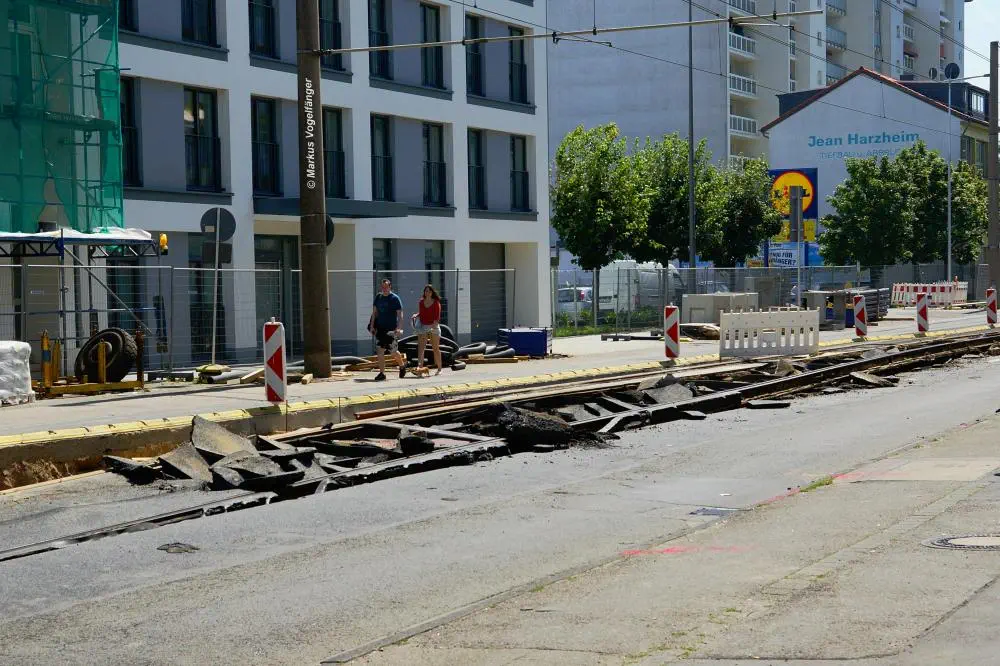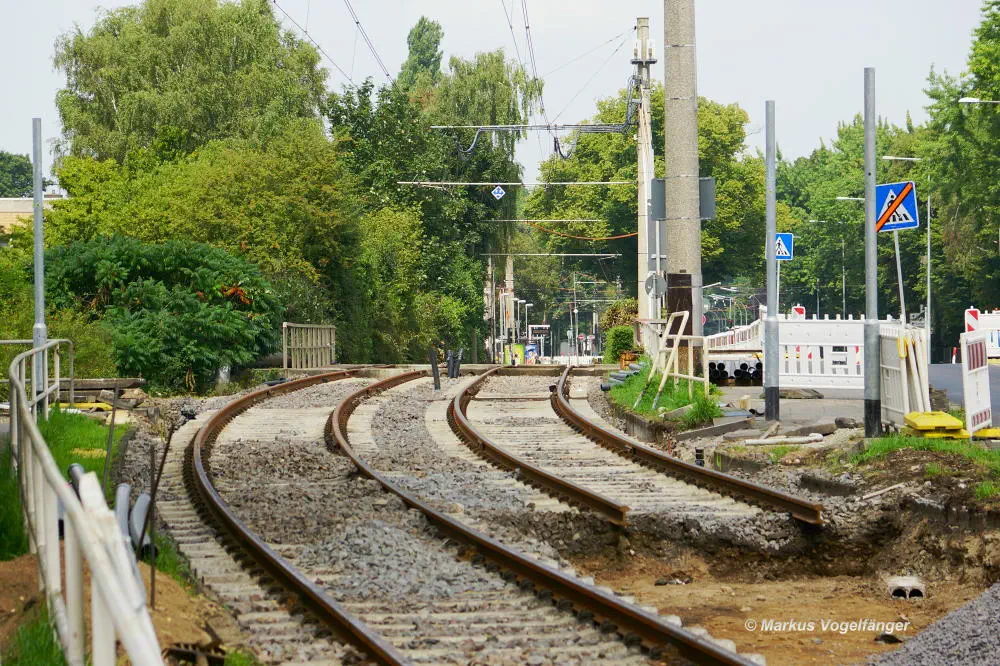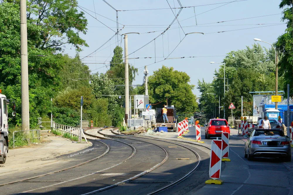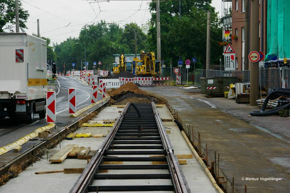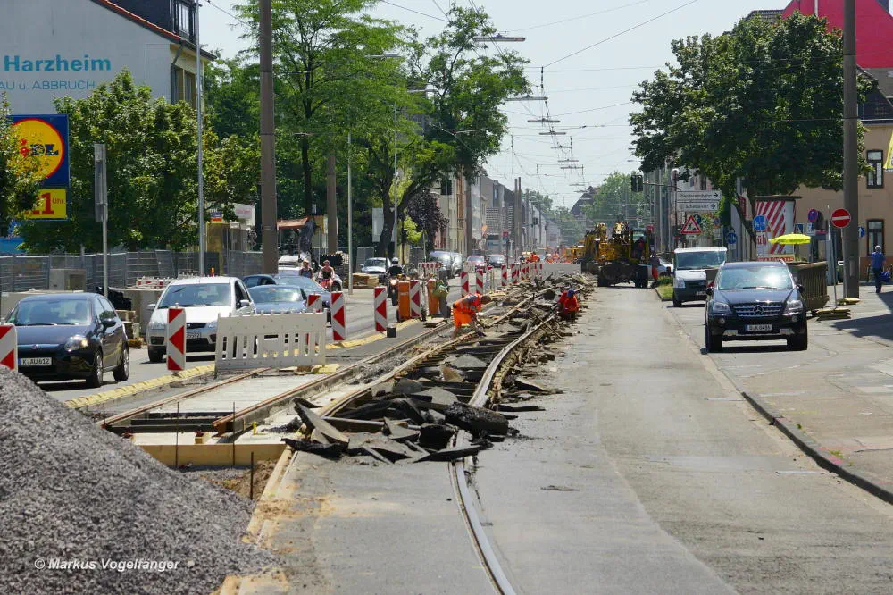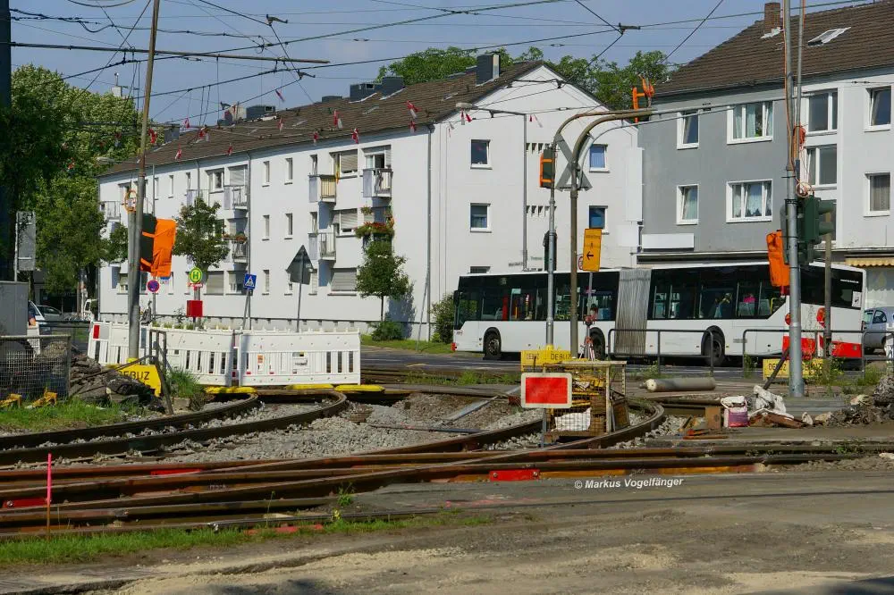 An der Haltestelle Wilhelm-Sollmann-Straße wurden die Gleise Richtung Innenstadt bereits entfernt. (07.07.2014)