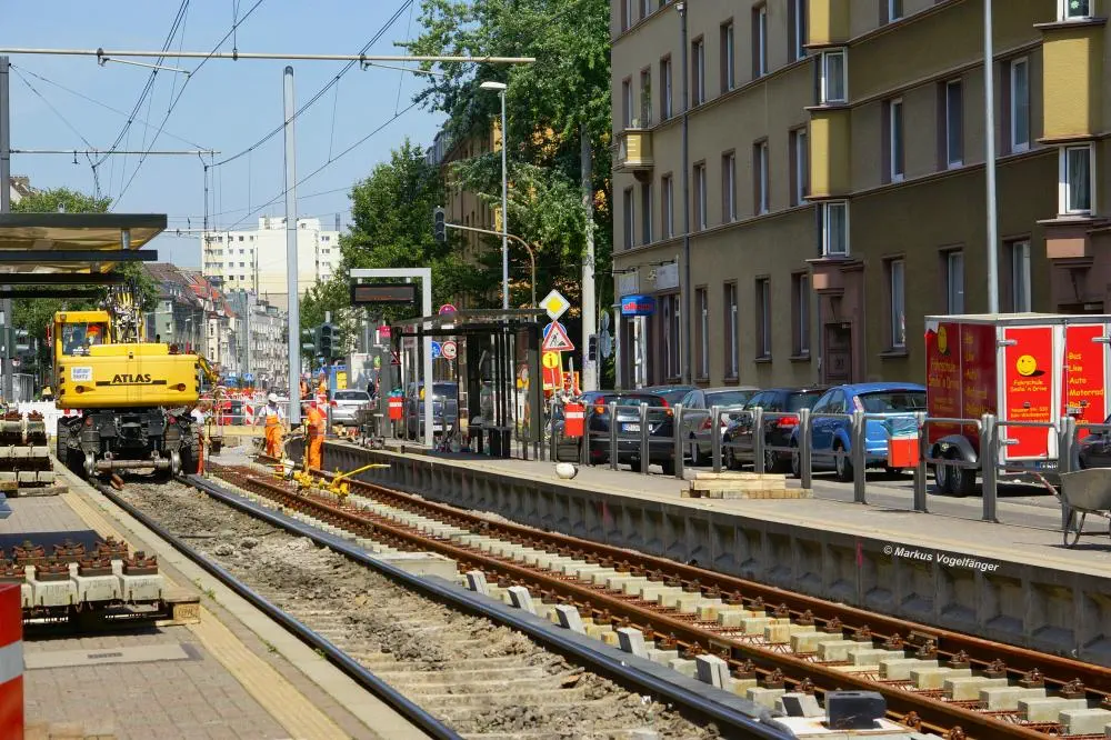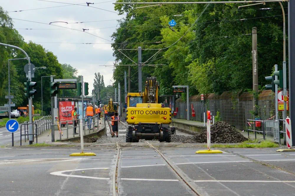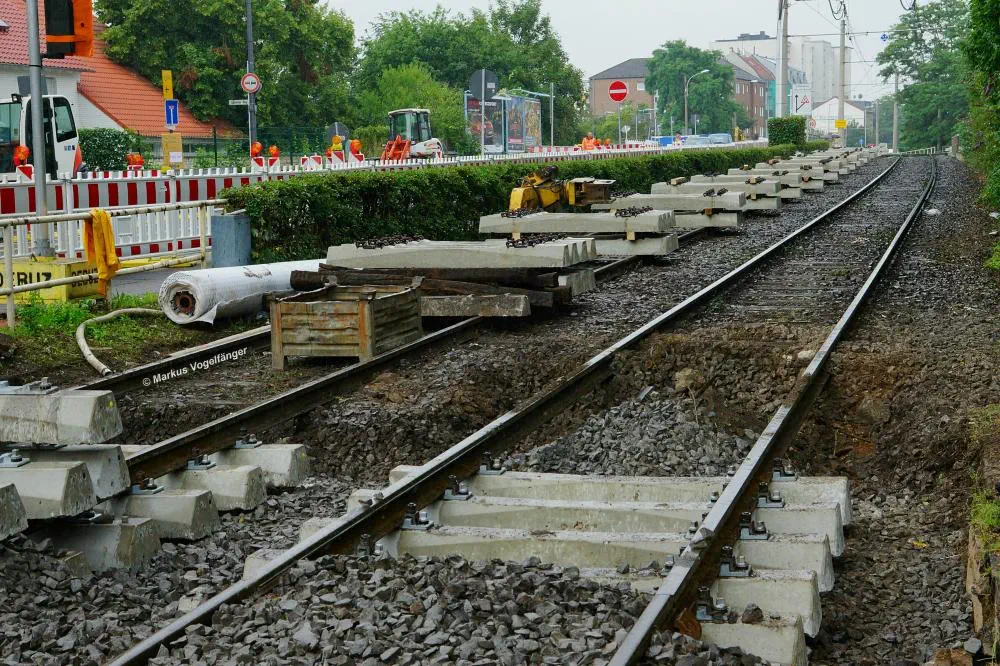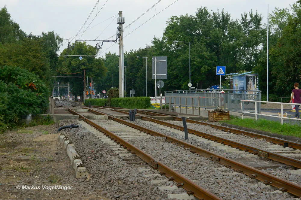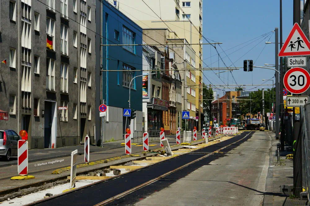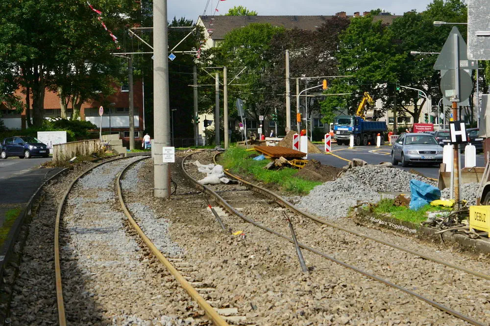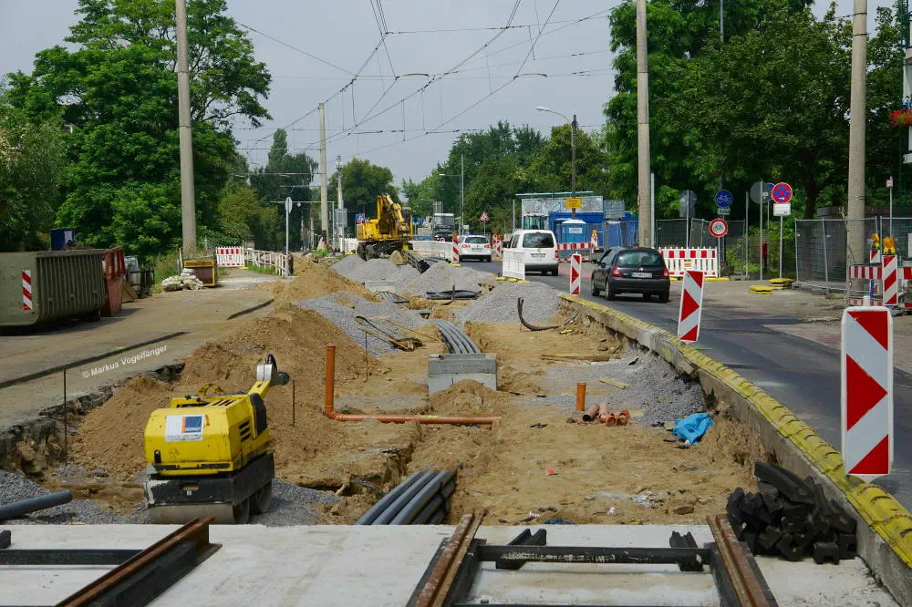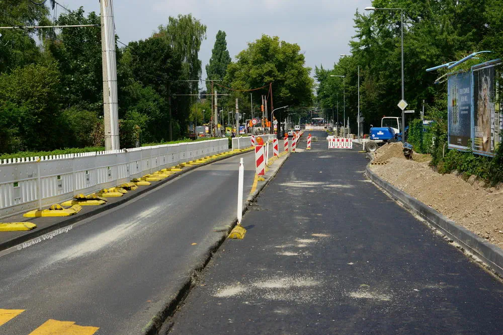 An der Haltestelle Wilhelm-Sollmann-Straße wurden die Gleise Richtung Innenstadt bereits entfernt. (07.07.2014)