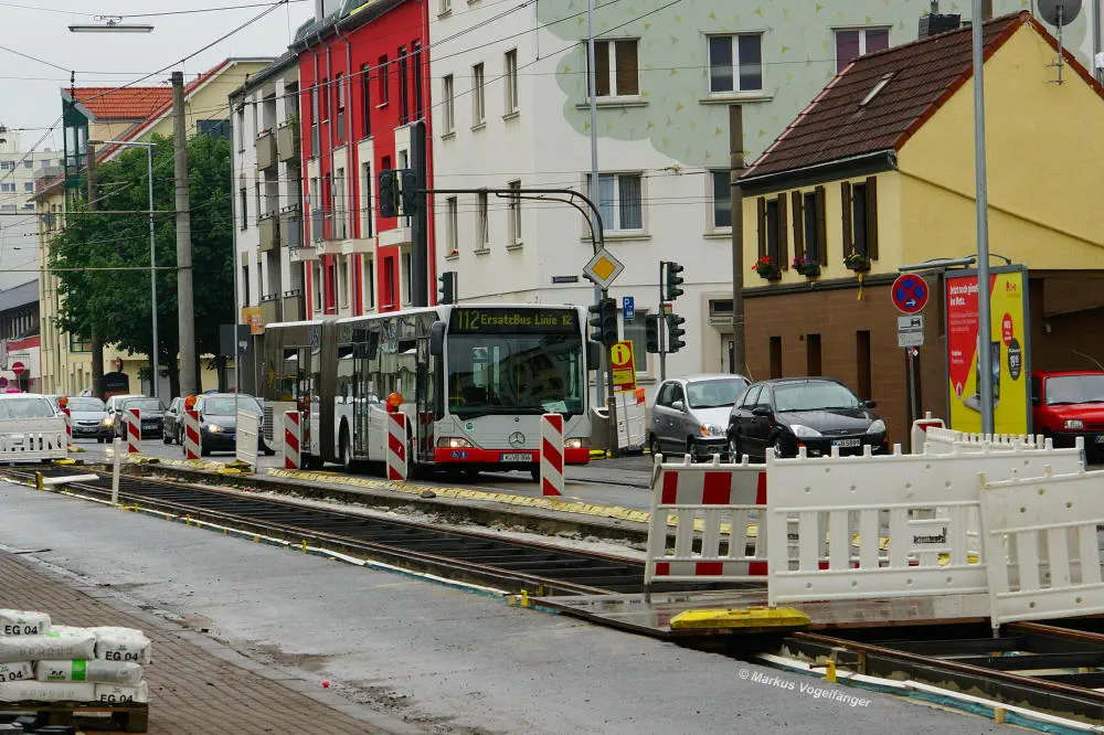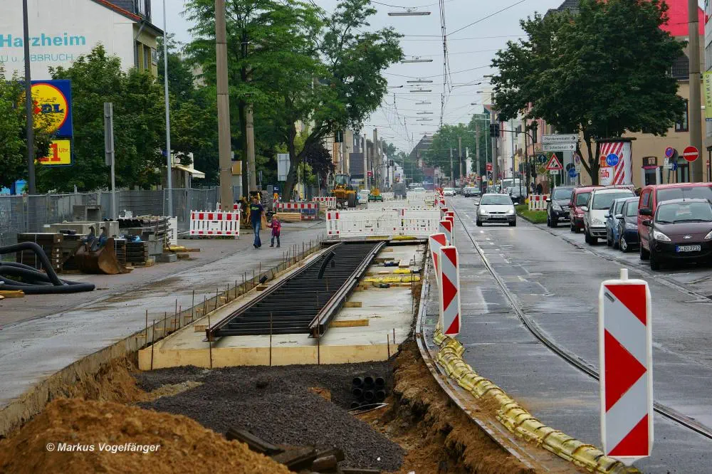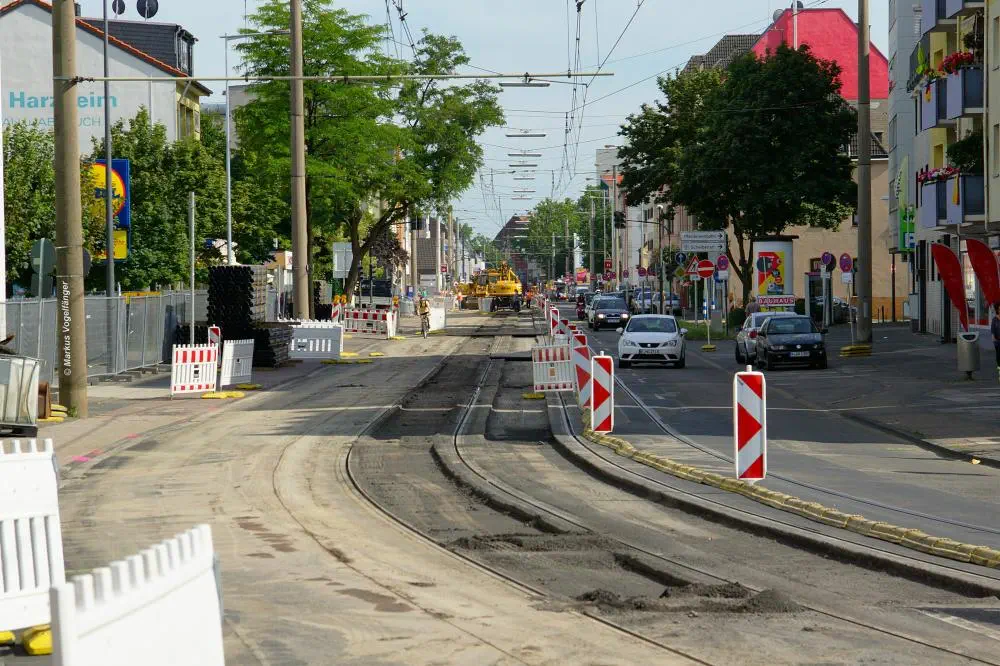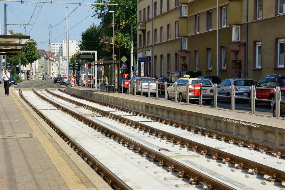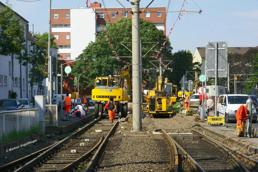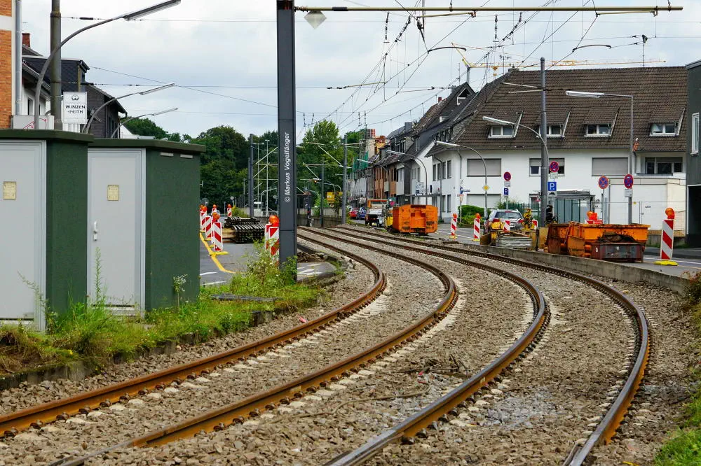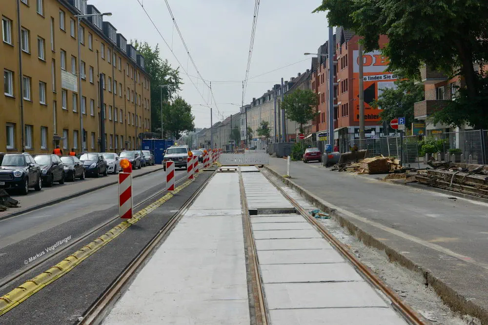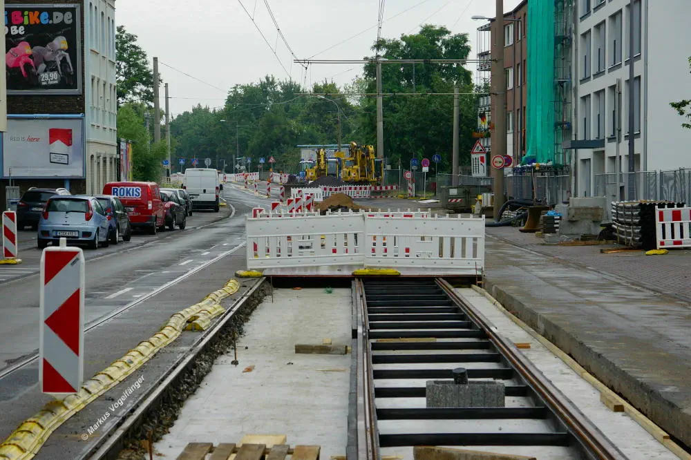 An der Haltestelle Wilhelm-Sollmann-Straße wurden die Gleise Richtung Innenstadt bereits entfernt. (07.07.2014)