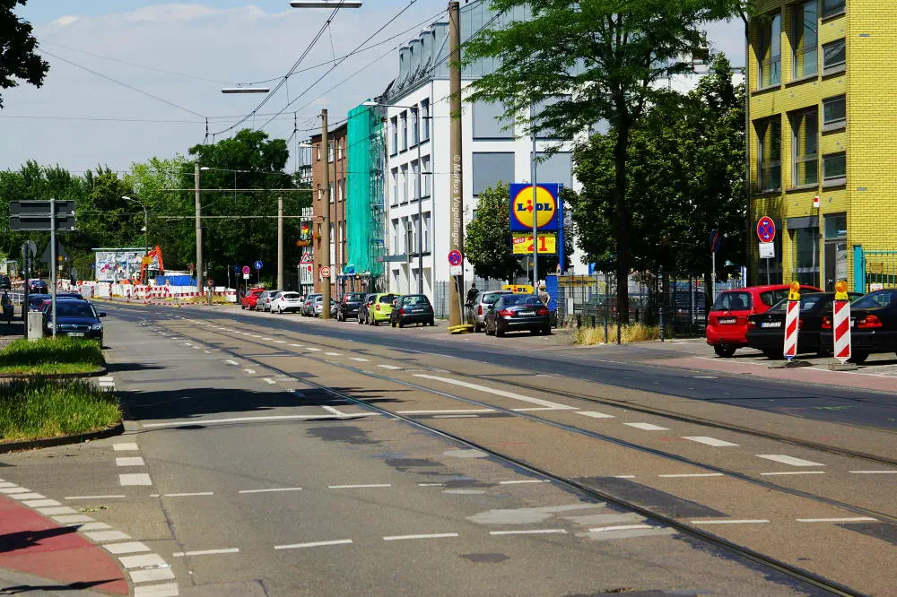 Die Neusser Straße vor dem Beginn der Bauarbeiten am 02.07.2014.