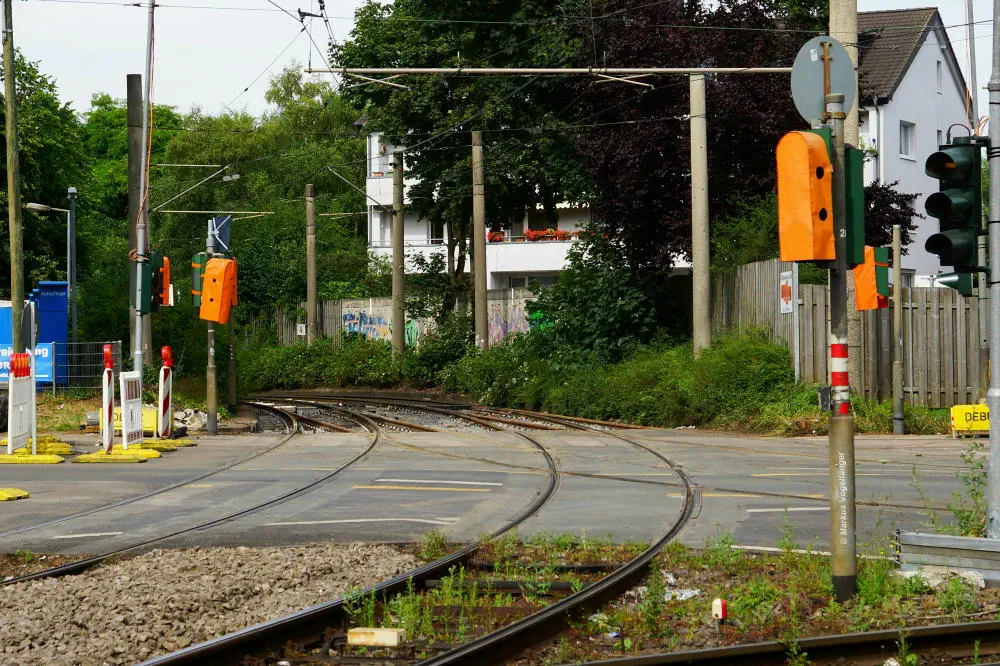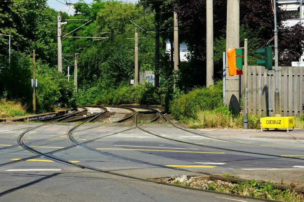 Die Gleiskreuzung Wilhelm-Sollmann-Straße/Neusser Straße am 07.07.2014.