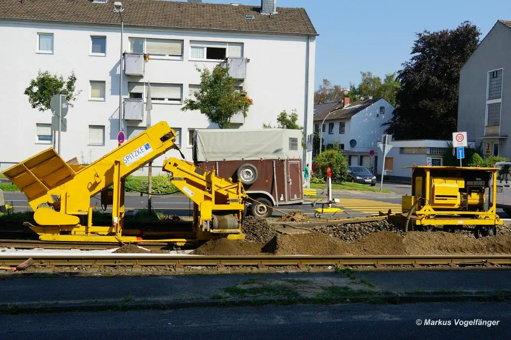 Gleisbettreinigung und Schwellentausch auf der Wilhelm-Sollmannstraße am 02.08.2014.