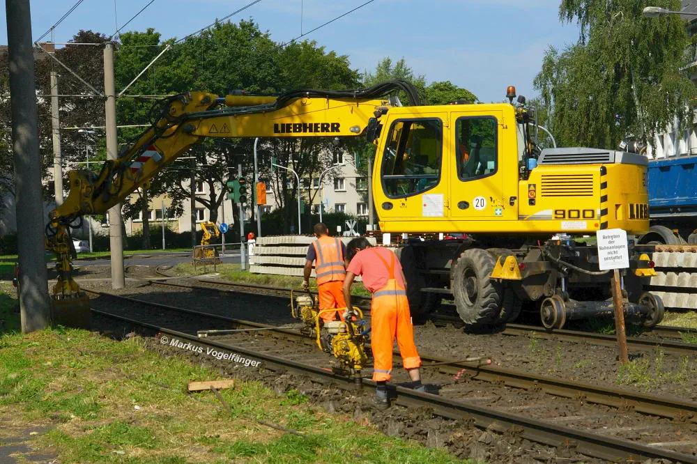 Schienenbagger auf der Neusser Straße am 13.07.2014.