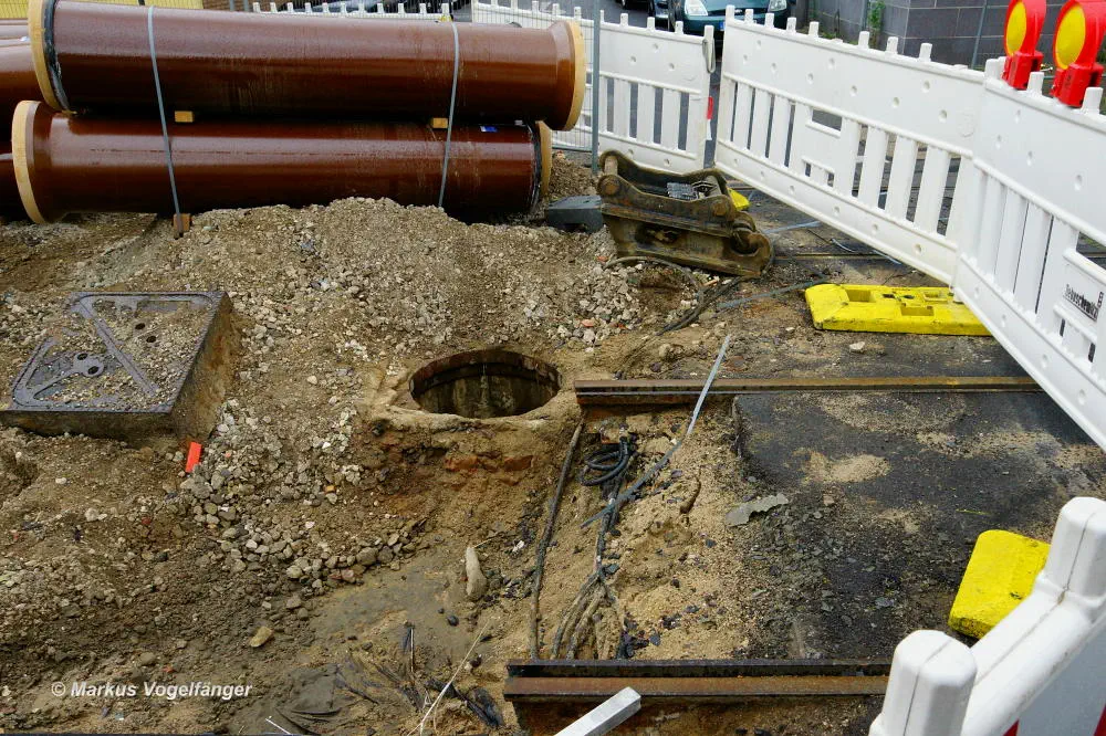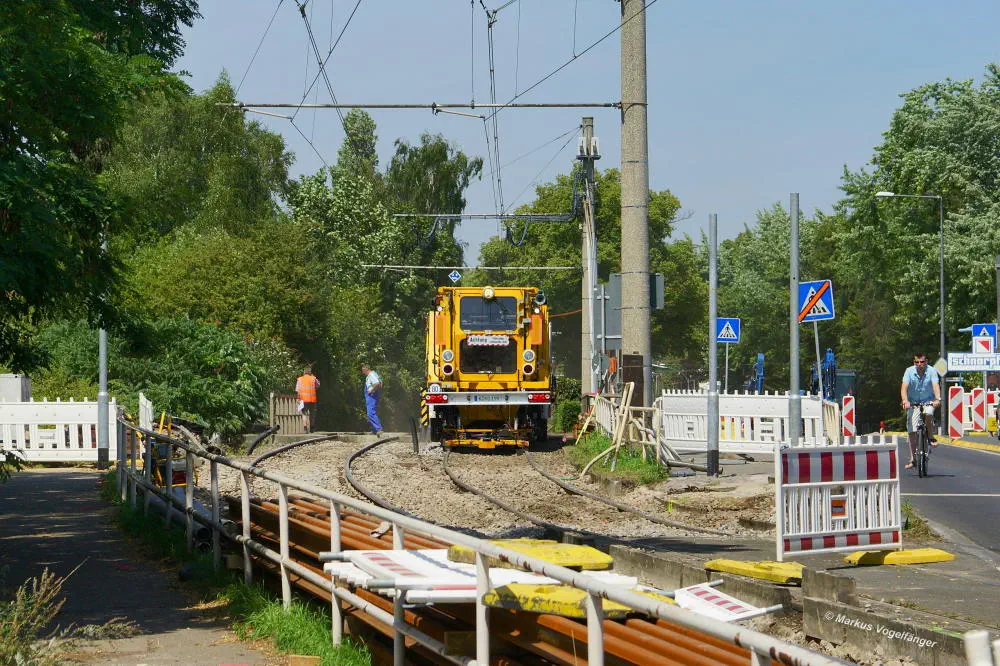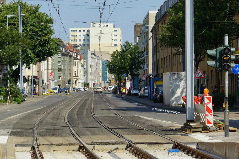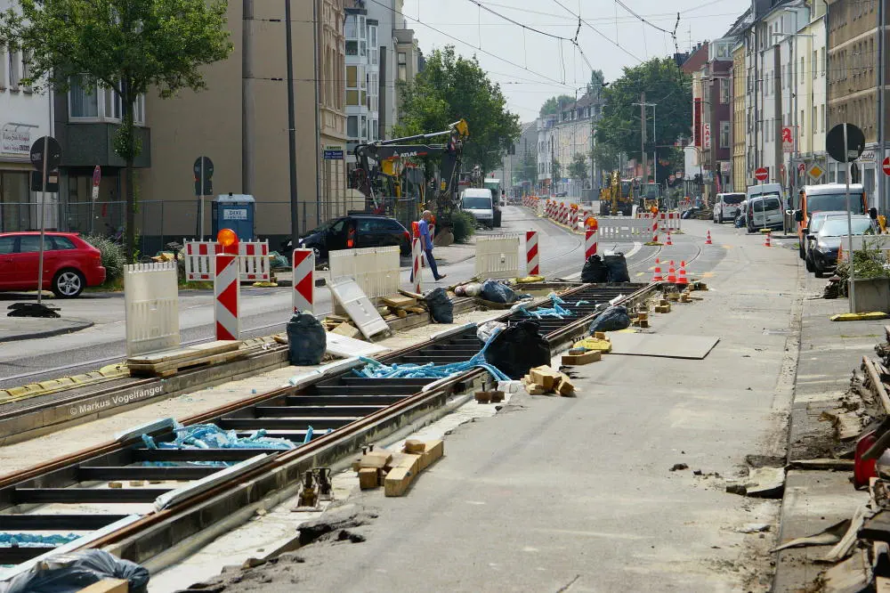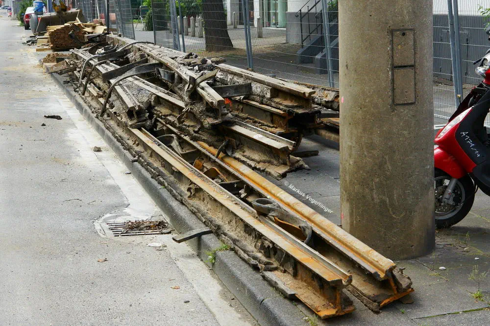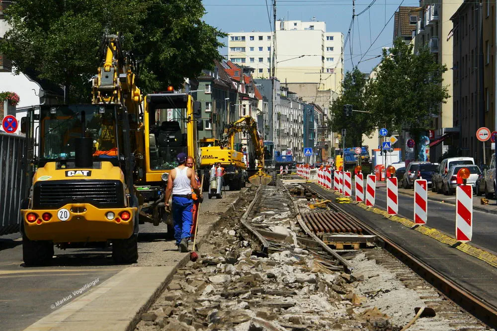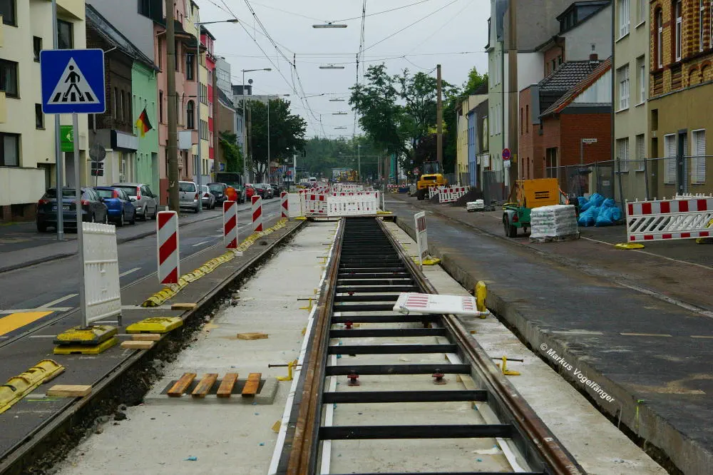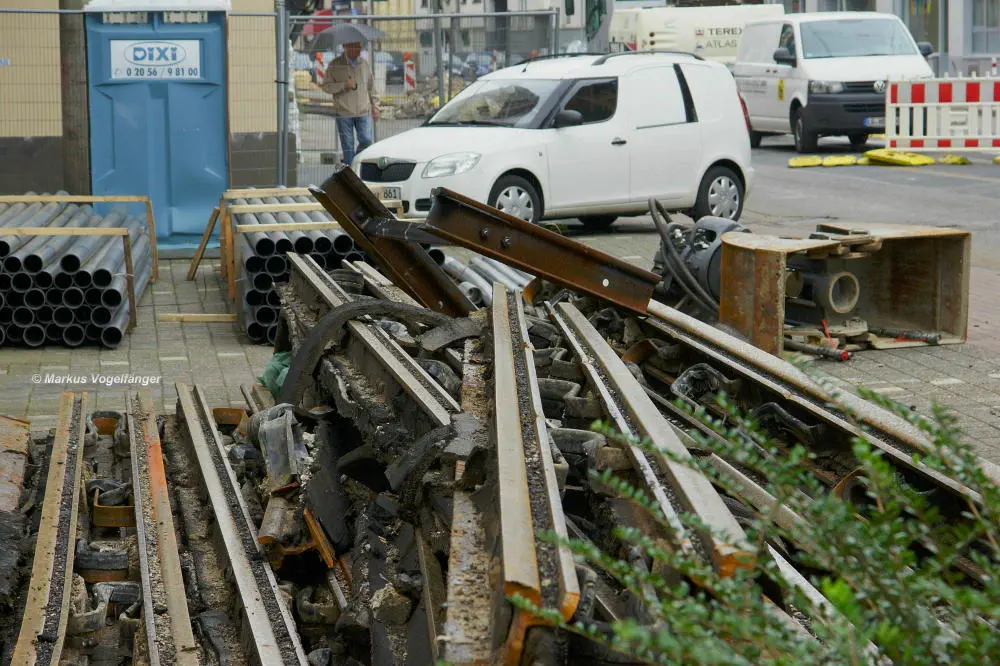 Die zu erneuernden Gleise auf der Wilhelm-Sollmann-Straße am 02.08.2014.