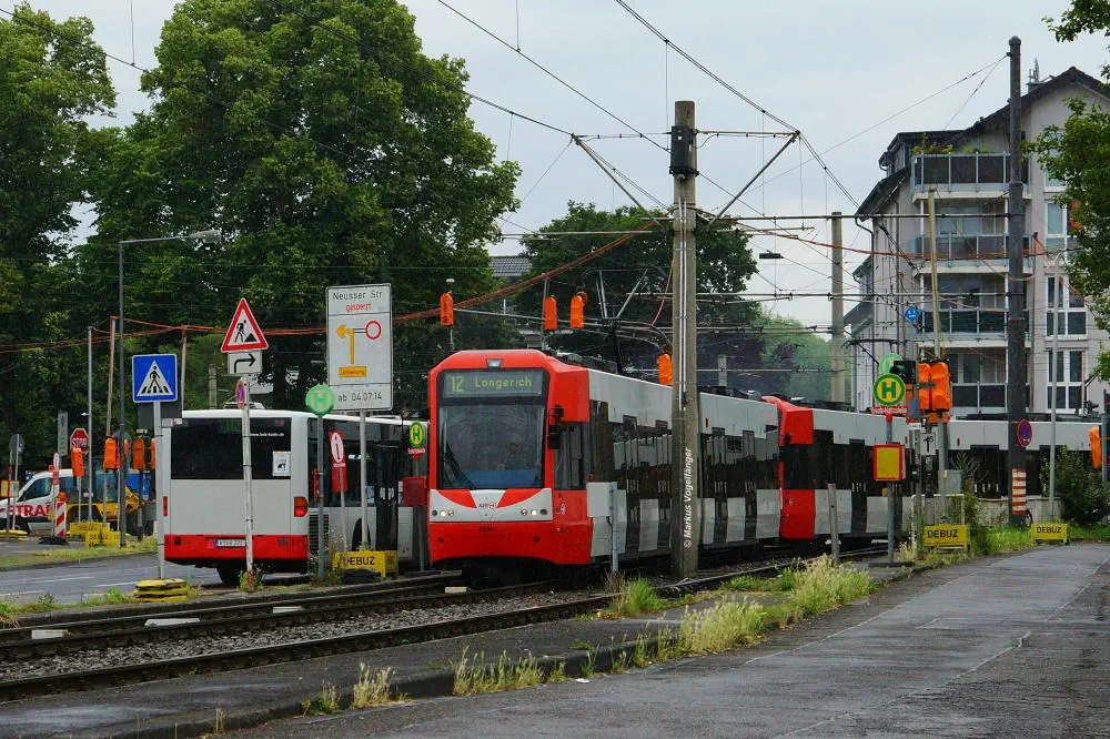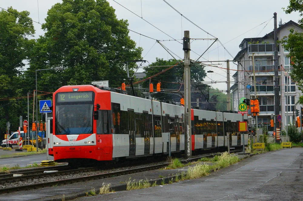 4018 als umgeleitete Linie 12 an der Haltestelle Longericher Straße während Bauphase 1 am 05.07.2014.
