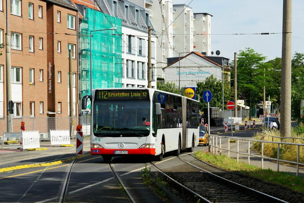 K-VB 373 als Schienenersatzbus 112 auf der Wilhelm-Sollmann-Straße während Bauphase 1 am 05.07.2014.