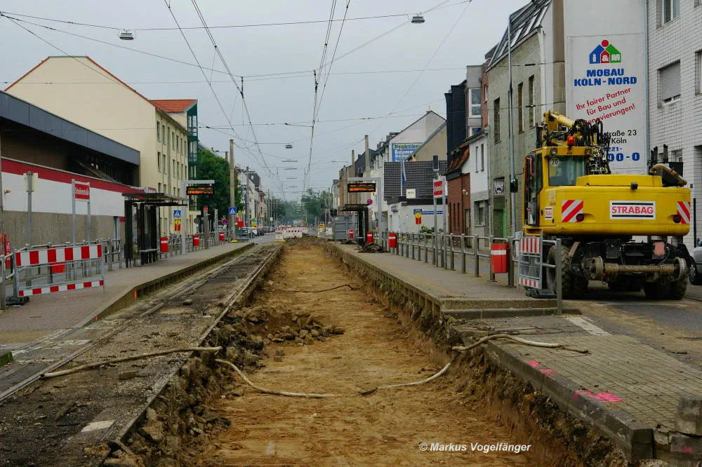 Der aktuelle Bauzustand an der Haltestelle Longericher Straße am 16.08.2014.