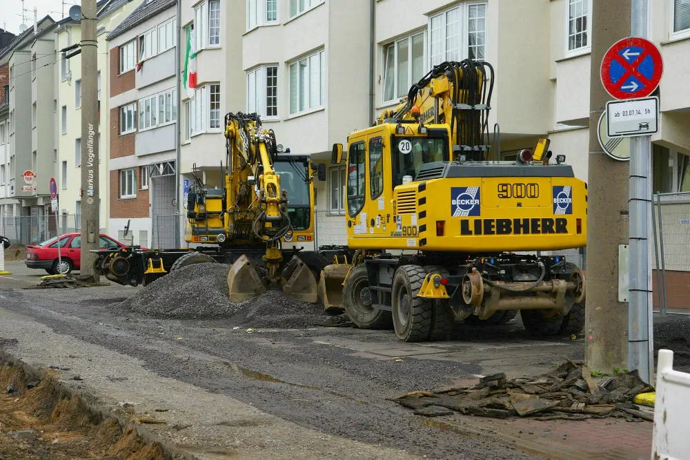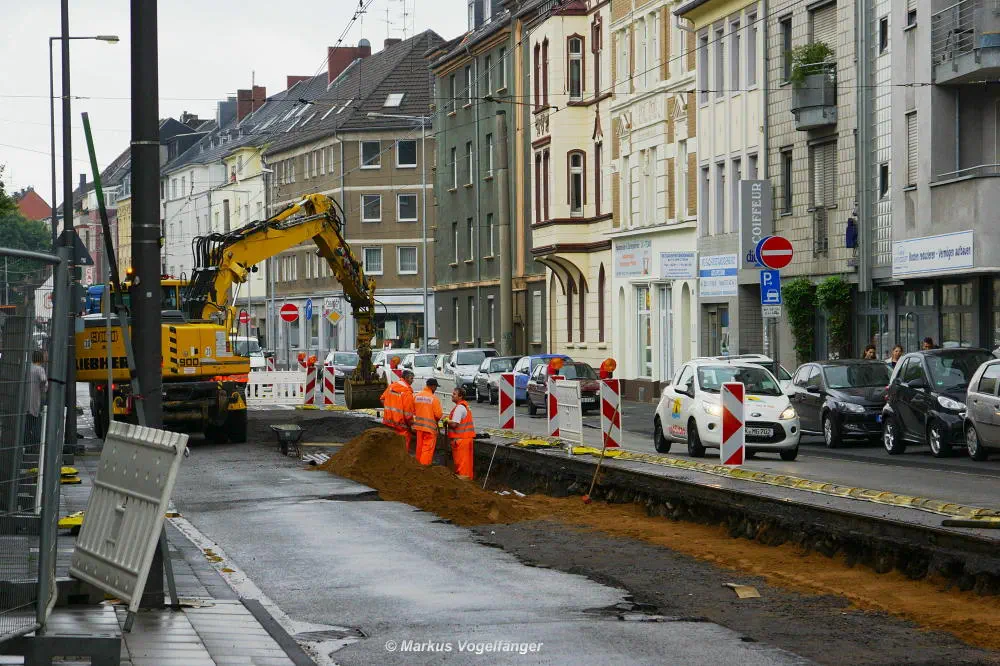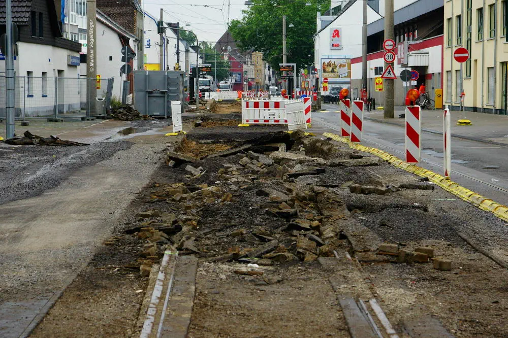 Der aktuelle Bauzustand auf der Neusser Straße vor dem Umbau am 02.07.14.