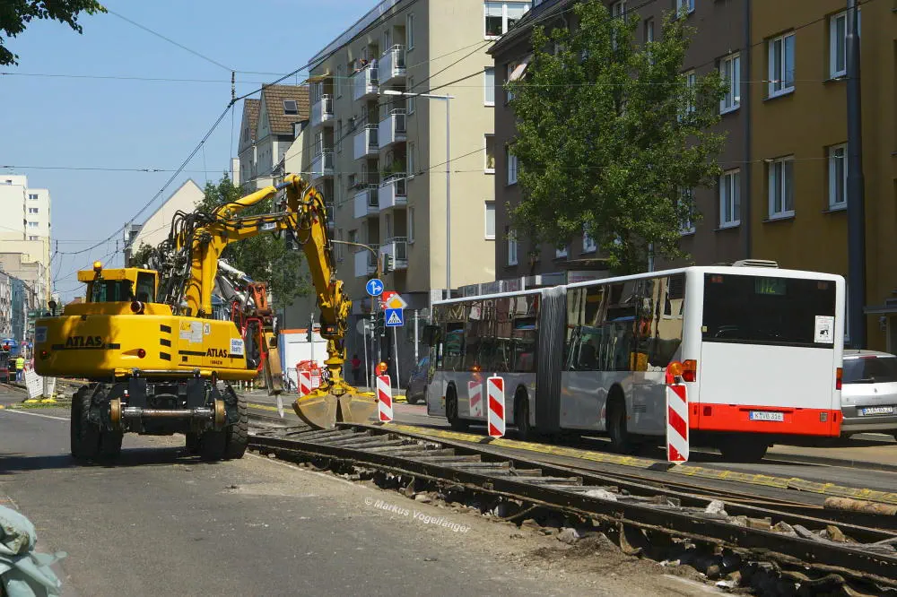 4075 und 4021 auf der Neusser Straße während Bauphase 1 am 05.07.2014.
