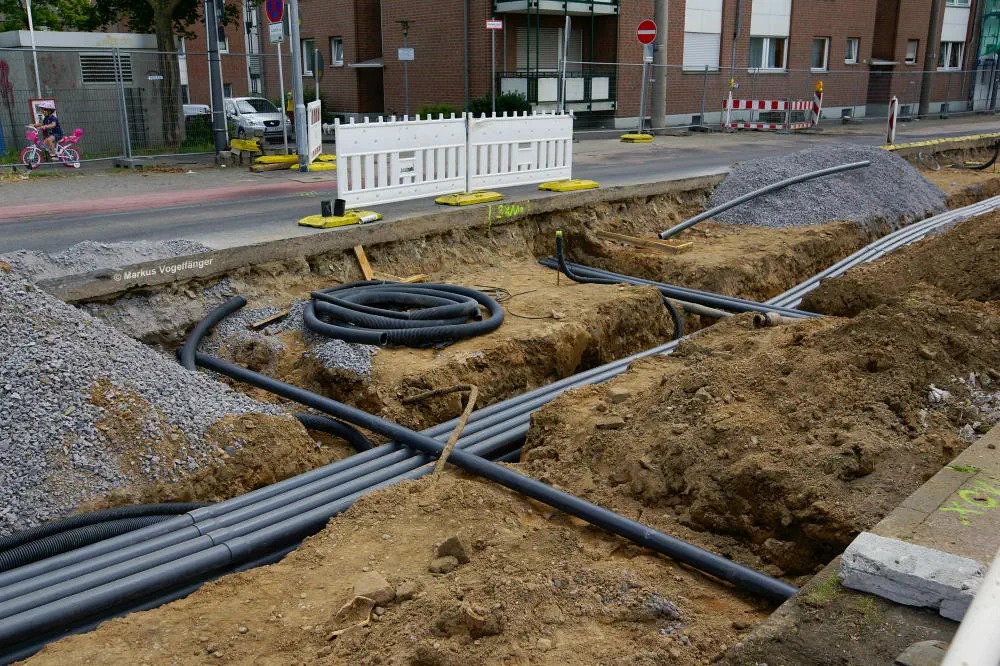 Der aktuelle Bauzustand auf der Neusser Straße während Bauphase 1 am 05.07.14.