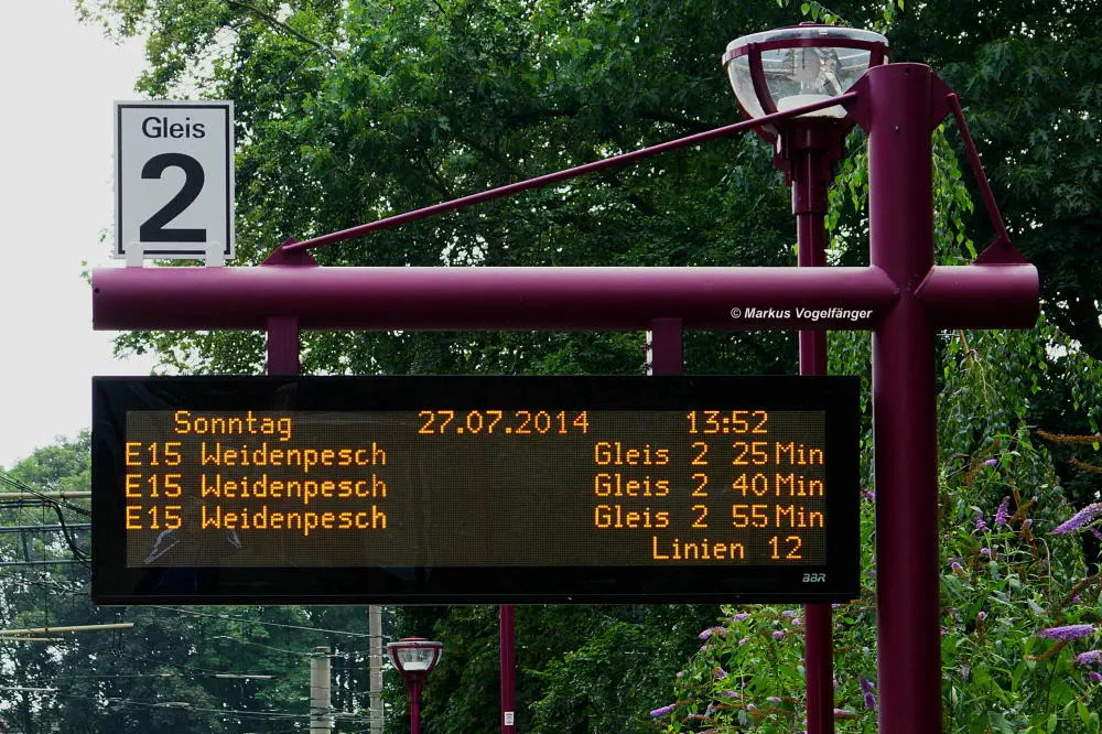 Fahrgastinformations-Anzeige in Niehl am 27.07.2014.