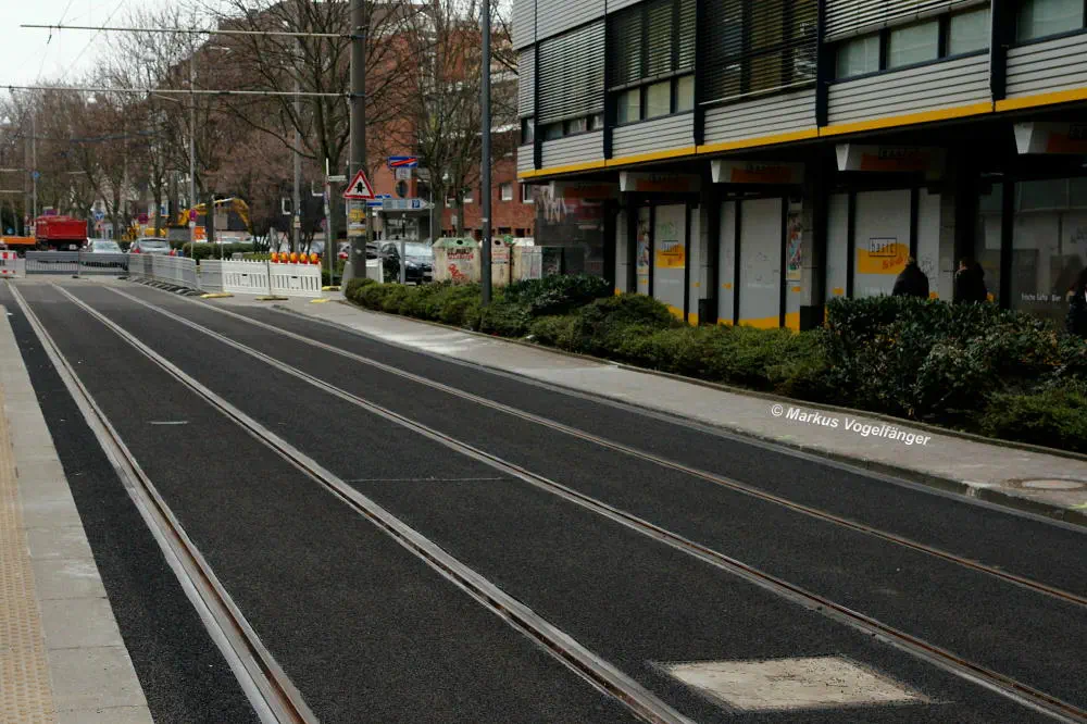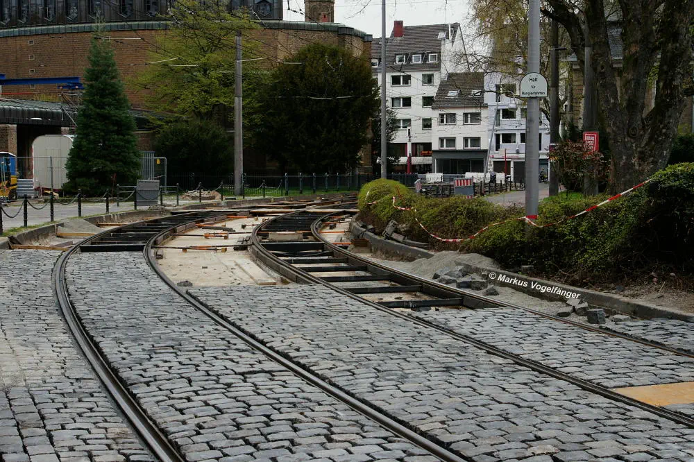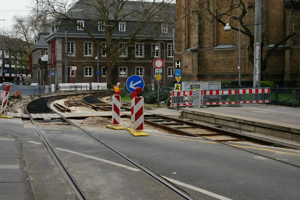 aktueller Bauzustand auf der Jahnstraße an der Haltestelle Zülpicher Platz am 02.04.2013.
