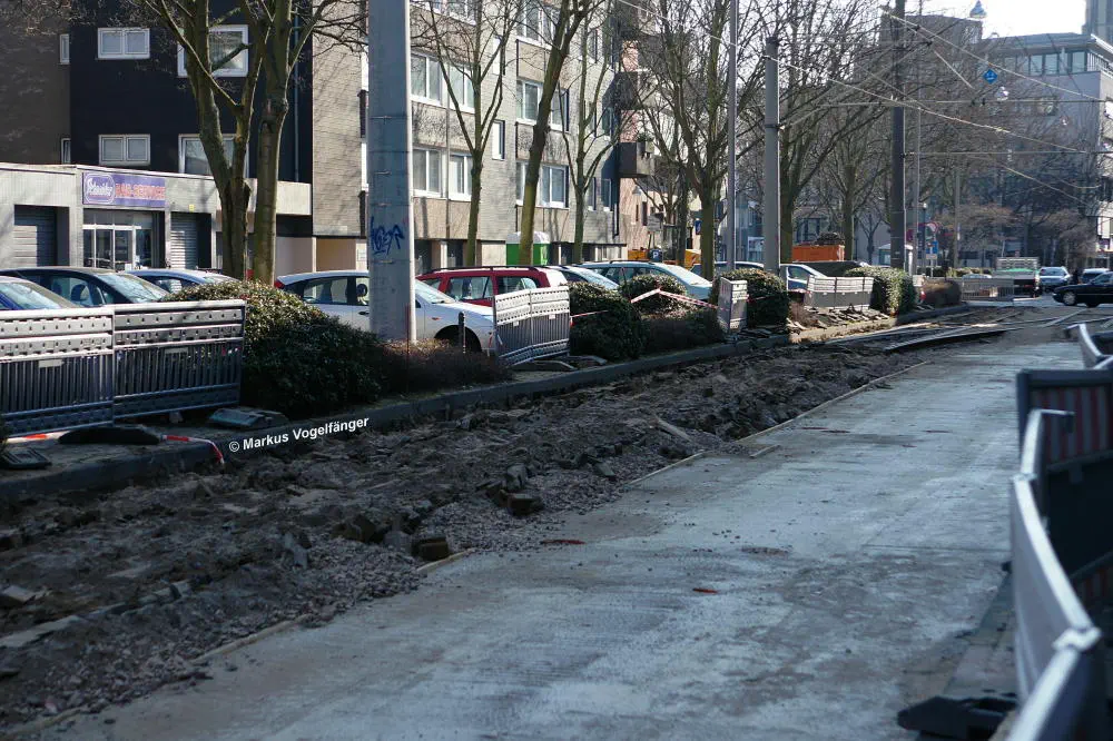 aktueller Bauzustand auf der Jahnstraße an der Haltestelle Zülpicher Platz am 24.03.2013.