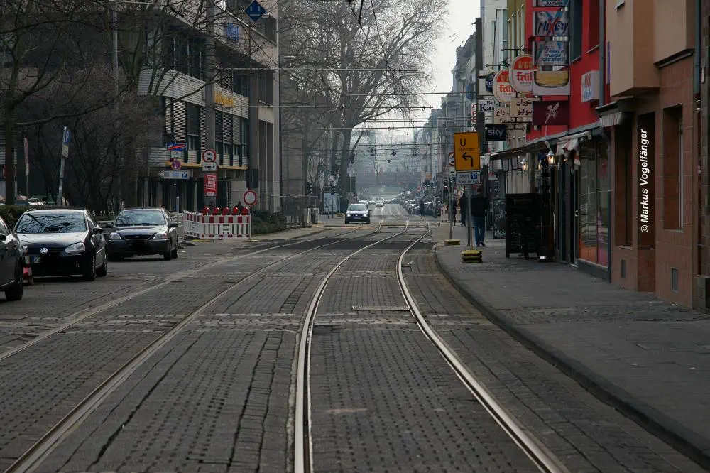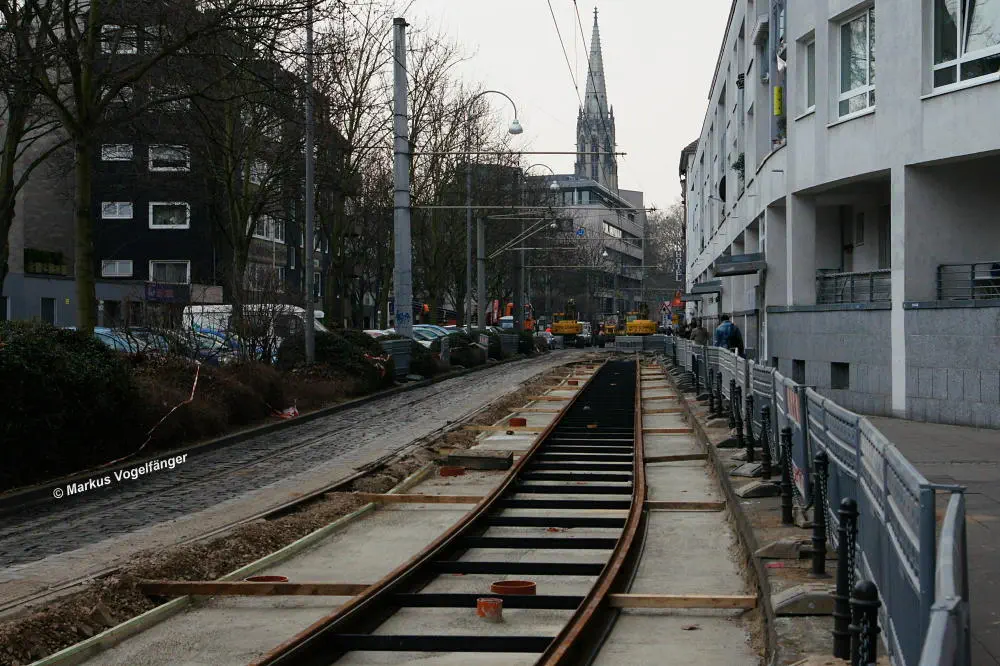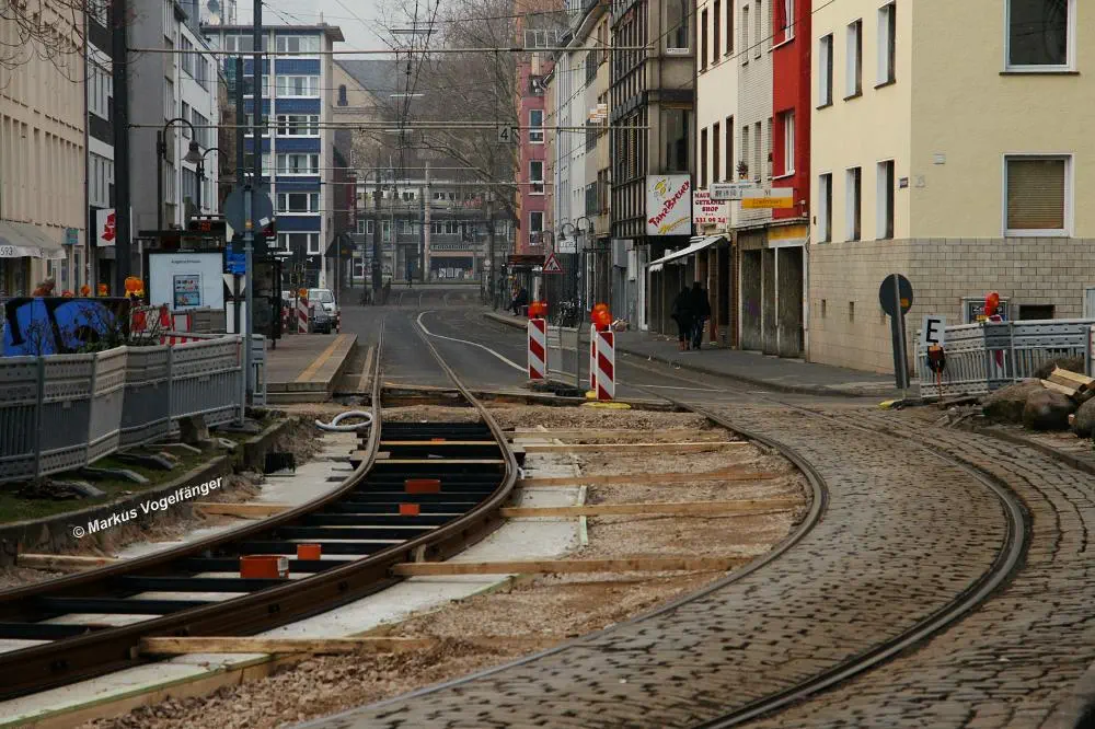 aktueller Bauzustand auf der Jahnstraße mit Blick zur Haltestelle Zülpicher Platz am 21.04.2013.